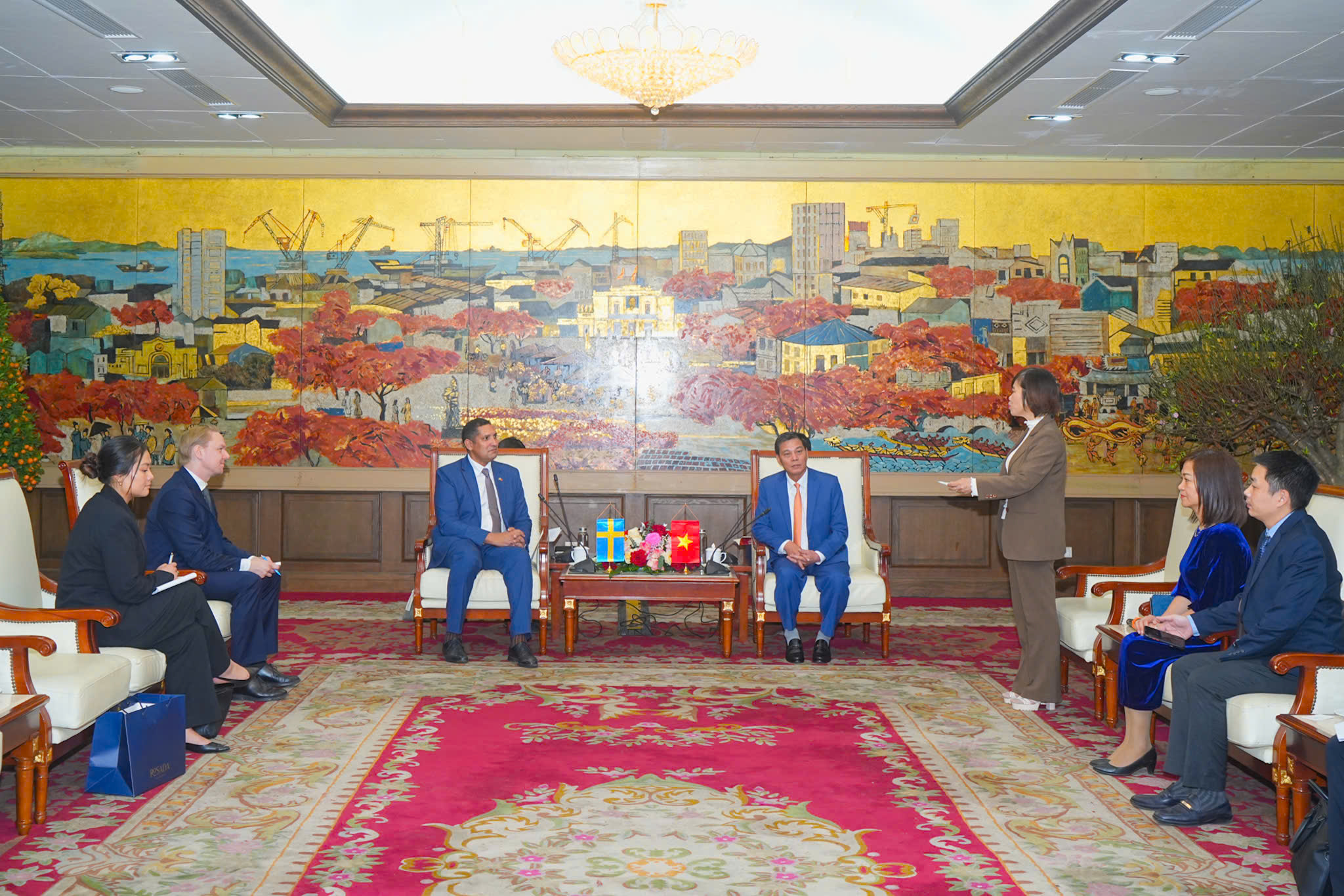 Chủ tịch UBND thành phố Nguyễn Văn Tùng giới thiệu về tình hình phát triển kinh tế - xã hội của thành phố.Trân trọng cảm ơn lãnh đạo thành phố đã tiếp đón chu đáo dù thời điểm cuối năm bận rộn, Ngài Johan Ndisi, Đại sứ Thụy Điển cho rằng trong suốt 55 năm qua, Việt Nam và Thụy Điển đã không ngừng vun đắp, cùng cố và phát triển mối quan hệ song phương ngày càng bên vững, đi vào chiều sâu và đạt được những kết quả tích cực trên nhiều lĩnh vực. Trong bối cảnh đó, thành phố Hải Phòng - với vai trò là một trong những trung tâm kinh tế, công nghiệp và cảng biển lớn nhất của Việt Nam - đã có những đóng góp tích cực vào việc thúc đẩy quan hệ hợp tác giữa hai nước. Nhằm tăng cường hợp tác trên các lĩnh vực giữa Thụy Điển với thành phố Hải Phòng, Ngài Johan Ndisi tin tưởng sau chuyến làm việc, tiềm năng, cơ hội đó sẽ được cụ thể hoá thành các dự án hợp tác để hai bên cùng phát triển.