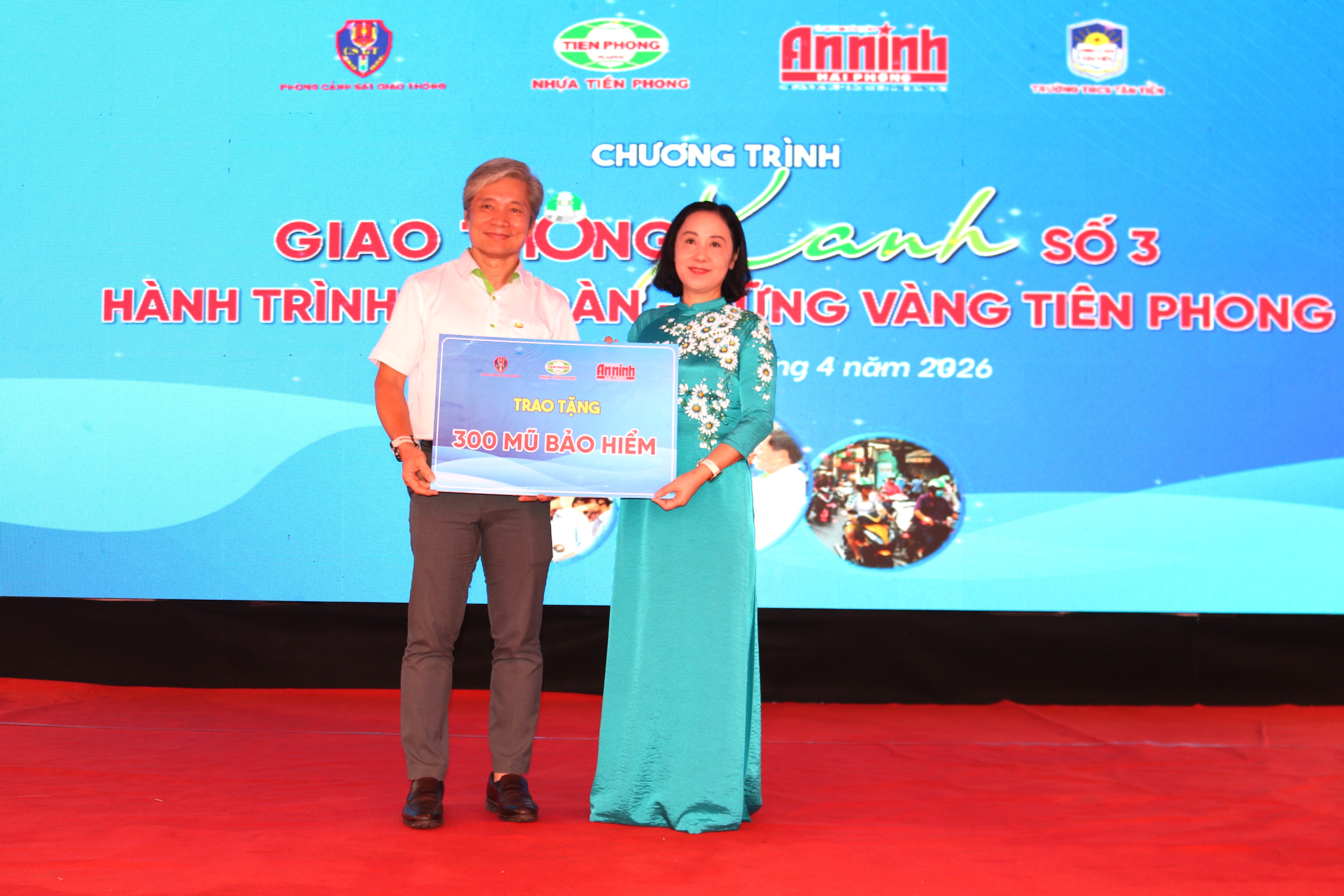 Công ty Cổ phần Nhựa Thiếu niên Tiền Phong tặng học sinh nhà trường 300 mũ bảo hiểm.Điểm nhấn của chương trình là hoạt động trao tặng 300 mũ bảo hiểm cho học sinh nhà trường do Công ty Cổ phần Nhựa Thiếu niên Tiền Phong tài trợ. Tiếp đó, Trung tá Nguyễn Văn Ngọc, Phó trưởng Ban Chuyên đề An ninh Hải Phòng; ông Trần Đỗ Khoa, Chủ tịch Công đoàn Công ty Cổ phần Nhựa Thiếu niên Tiền Phong cùng đại diện Công an phường đã trao tặng mũ bảo hiểm và trao quà tặng 30 học sinh tiêu biểu của nhà trường.