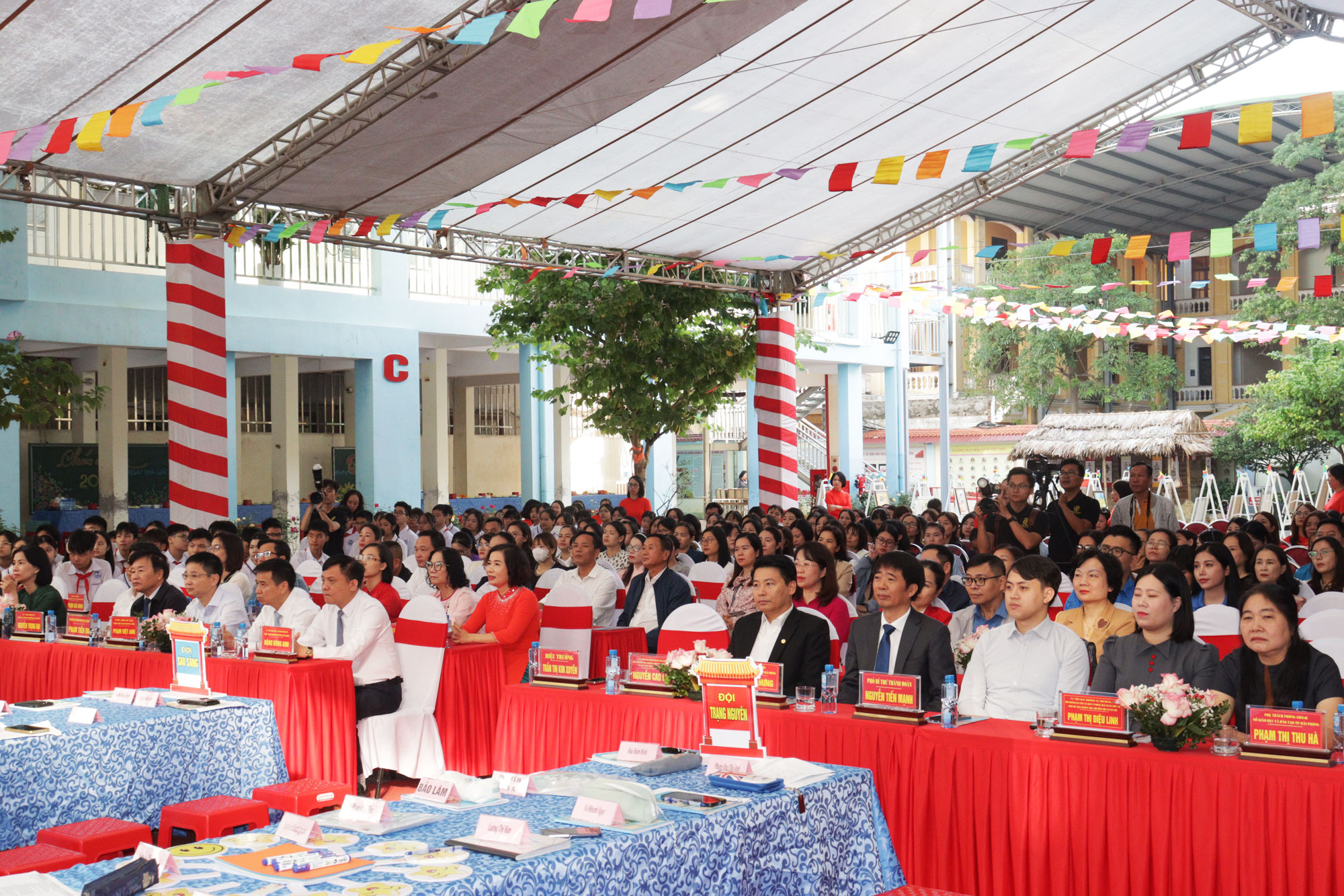 Các đại biểu dự Chuyên đề tại Trường THCS Ngô Quyền.Phát biểu tại Chuyên đề, đồng chí Đỗ Duy Hưng, Phó Giám đốc Sở Giáo dục và Đào tạo cho biết, từ đầu năm học đến thời điểm này, đã có nhiều chuyên đề cấp thành phố được tổ chức thành công thể hiện sự nỗ lực và vai trò của các nhà trường trong phong trào đổi mới, ứng dụng công nghệ số nâng cao chất lượng chuyên môn. Chuyên đề Dạy học kết nối trong kỷ nguyên số do Trường THCS Ngô Quyền (phường Lê Chân) và Trường THCS Võ Thị Sáu (phường Lê Thanh Nghị) thực hiện một lần nữa khẳng định, việc ứng dụng nhuần nhuyễn công nghệ số sẽ tạo ra môi trường học tập linh hoạt, tương tác và hiệu quả hơn; thu hẹp khoảng cách không gian và phát huy được khả năng tư duy, sáng tạo của cả thầy và trò.