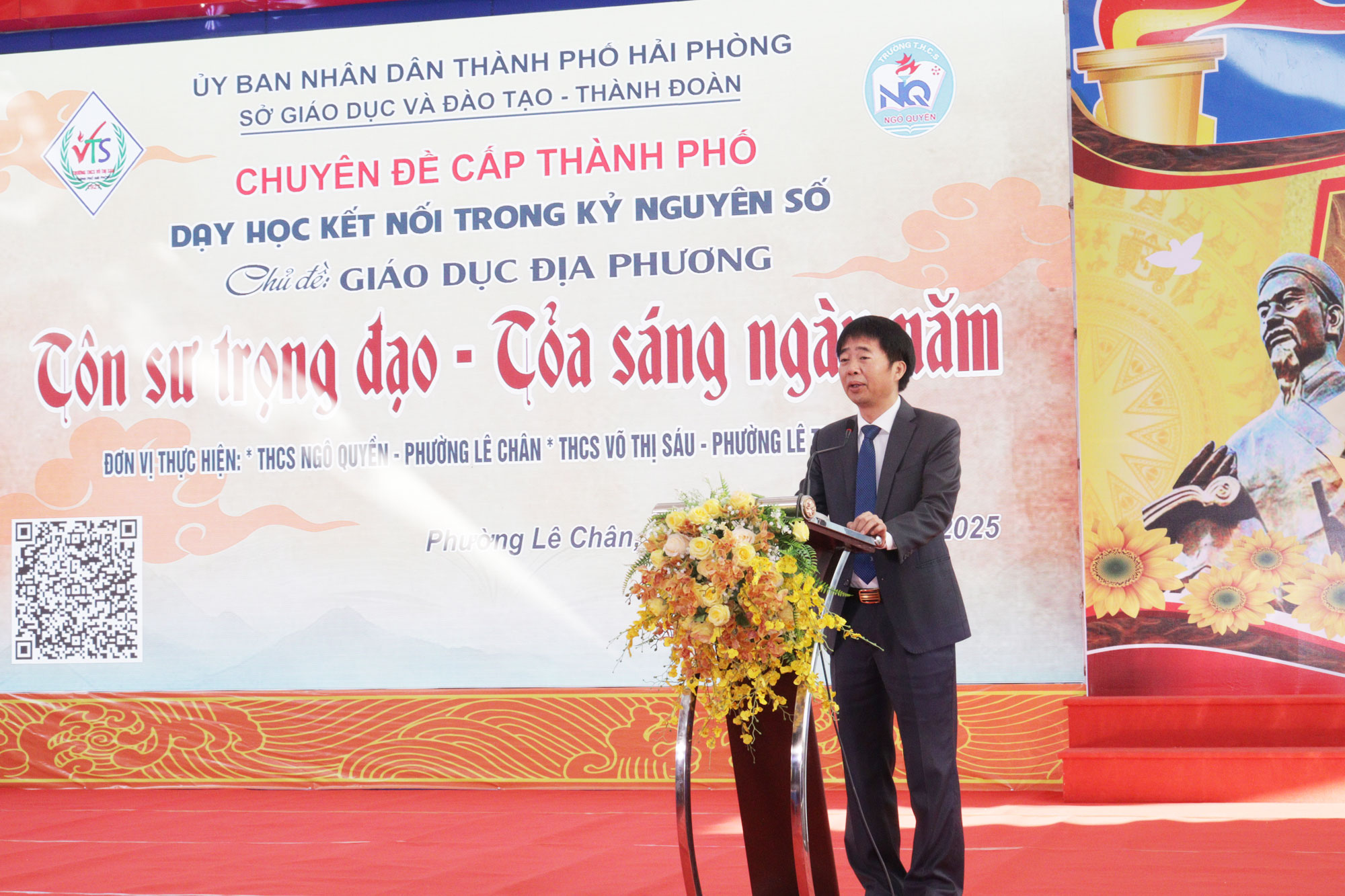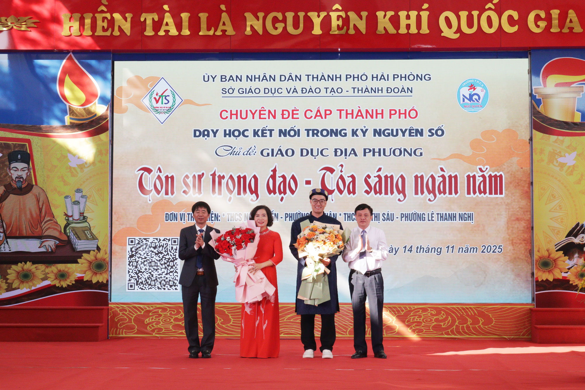 (Haiphong.gov.vn) - Sáng 14/11, Sở Giáo dục và Đào tạo chỉ đạo và hướng dẫn Trường THCS Ngô Quyền (phường Lê Chân) và Trường THCS Võ Thị Sáu (phường Lê Thanh Nghị) tổ chức thực hiện chuyên đề cấp thành phố: Dạy học kết nối trong kỷ nguyên số - Chủ đề Giáo dục địa phương “Tôn sư trọng đạo - Tỏa sáng ngàn năm” nhằm tăng cường bồi dưỡng năng lực chuyên môn, nghiệp vụ cho giáo viên, nâng cao chất lượng dạy và học.