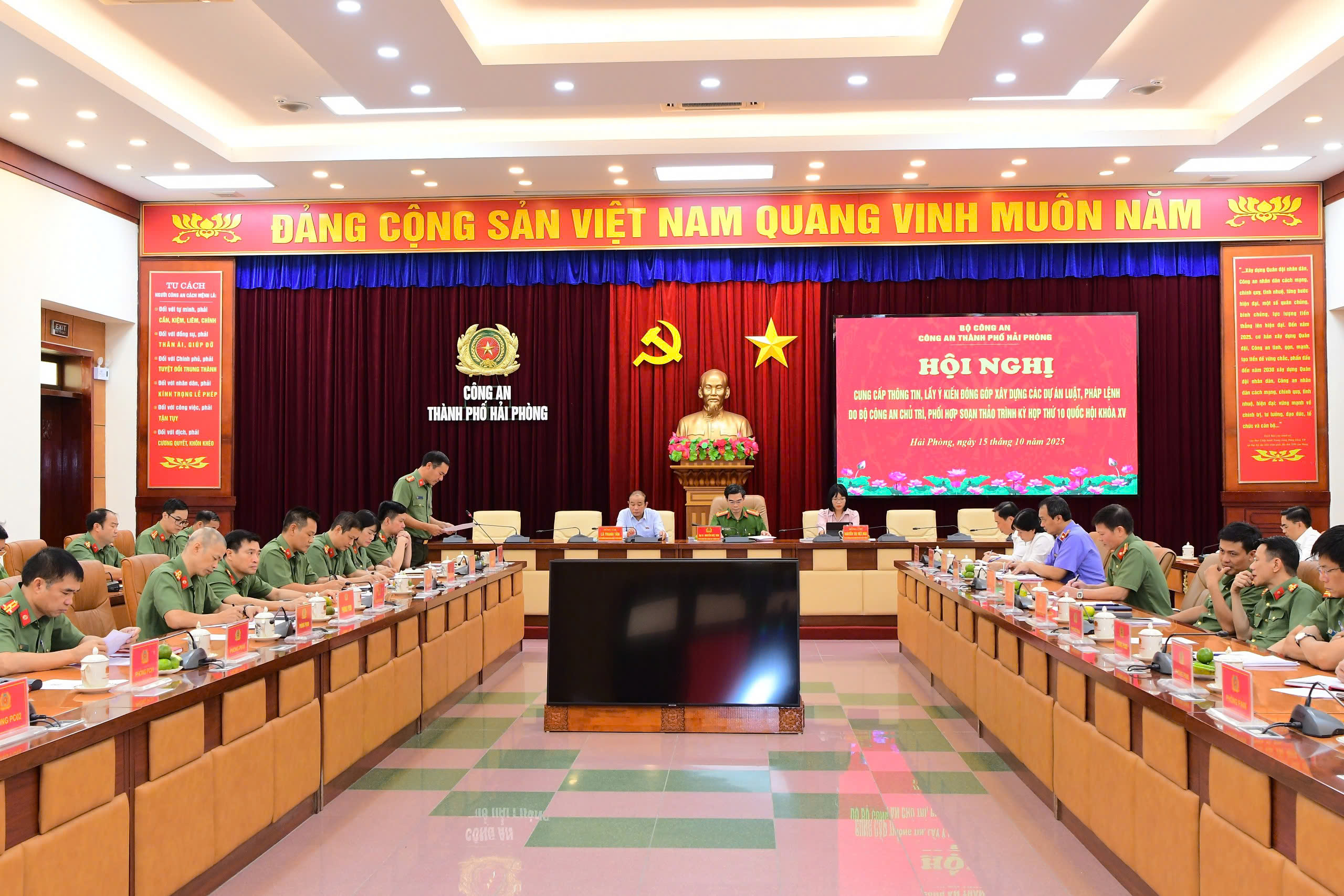 (Haiphong.gov.vn) - Chiều 15/10, Công an thành phố (CATP) tổ chức Hội nghị cung cấp thông tin, lấy ý kiến tham gia xây dựng 11 dự án Luật, Pháp lệnh do Bộ Công an chủ trì soạn thảo trình kỳ họp thứ 10, Quốc hội khóa XV. Đại tá Nguyễn Đức Thìn, Phó Giám đốc CATP chủ trì Hội nghị.