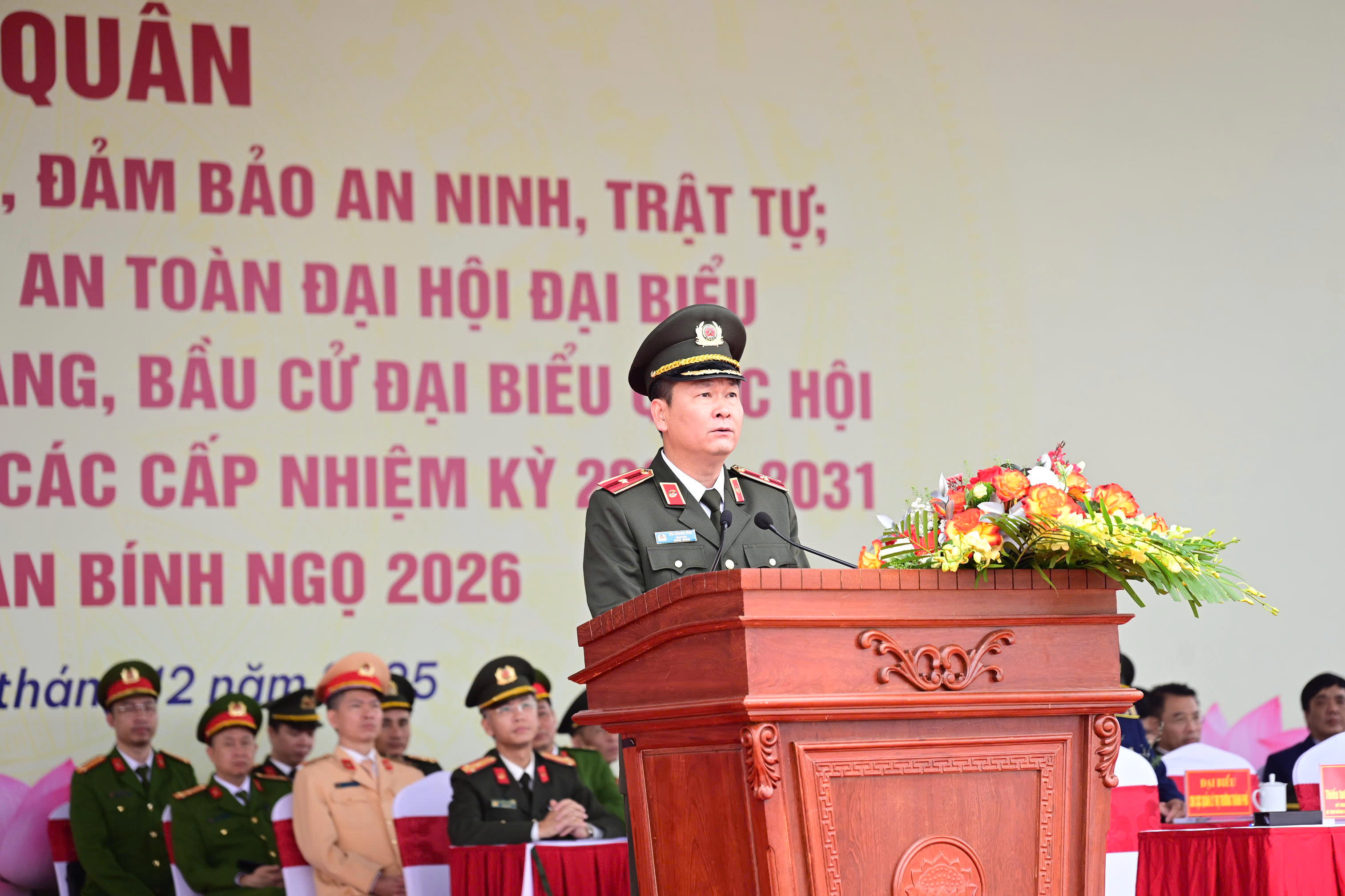 Phát biểu chỉ đạo tại buổi Lễ, đồng chí Lê Anh Quân, Uỷ viên Ban thường vụ Thành uỷ, Phó Chủ tịch Thường trực UBND thành phố nhấn mạnh: Giai đoạn cuối năm và dịp Tết Nguyên đán thường tiềm ẩn nguy cơ gia tăng các loại tội phạm, vi phạm pháp luật, cháy nổ, tai nạn giao thông, gây ảnh hưởng đến đời sống Nhân dân. Đặc biệt, tháng 1/2026 diễn ra Đại hội đại biểu toàn quốc lần thứ XIV của Đảng và tiếp đó là cuộc bầu cử Quốc hội và HĐND các cấp – thời điểm các thế lực thù địch lợi dụng để chống phá. Do đó, đợt cao điểm tấn công, trấn áp tội phạm lần này có ý nghĩa chính trị đặc biệt quan trọng đối với việc bảo đảm an ninh quốc gia và giữ vững trật tự an toàn xã hội.