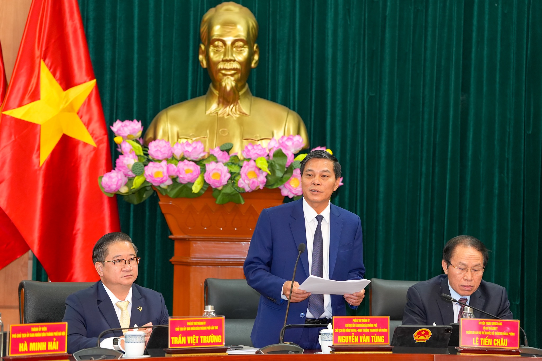 Chủ tịch UBND thành phố Nguyễn Văn Tùng phát biểu tại Hội nghị.Tiếp thu ý kiến chỉ đạo của đồng chí Đỗ Văn Chiến, Chủ tịch Ủy ban Trung ương Mặt trận Tổ quốc Việt Nam, phát biểu bế mạc Hội nghị, Chủ tịch UBND thành phố Hải Phòng Nguyễn Văn Tùng cho biết, sau một thời gian làm việc tích cực, khẩn trương, nghiêm túc và trách nhiệm, Hội nghị đã hoàn thành các nội dung chương trình đề ra. Hội nghị nhất trí cao với Báo cáo đánh giá kết quả thực hiện giao ước thi đua năm 2023, phương hướng nhiệm vụ năm 2024 của Cụm thi đua 5 thành phố. Các ý kiến phát biểu, thảo luận với tinh thần thẳng thắn, tâm huyết, trách nhiệm cao, đã rút ra nguyên nhân, bài học kinh nghiệm, giải pháp để thực hiện tốt hơn trong các năm tới. Thời gian tới, Cụm thi đua 5 thành phố tập trung thực hiện đồng bộ, có hiệu quả các nhiệm vụ, giải pháp đã đề ra nhằm thực hiện Nghị quyết số 01 ngày 5/1/2024 của Chính phủ về nhiệm vụ, giải pháp chủ yếu thực hiện Kế hoạch phát triển kinh tế - xã hội và dự toán ngân sách nhà nước năm 2024. Tiếp tục triển khai có hiệu quả, sáng tạo các phong trào thi đua do Chính phủ phát động, trên các lĩnh vực kinh tế - xã hội, giáo dục - đào tạo, y tế, khoa học kỹ thuật, quốc phòng - an ninh, đối ngoại,…Tăng cường công tác quản lý nhà nước về thi đua khen thưởng; nâng cao vai trò lãnh đạo, chỉ đạo của cấp ủy; đặc biệt là vai trò, trách nhiệm của người đứng đầu và Hội đồng Thi đua - Khen thưởng các cấp trong tổ chức phát động phong trào thi đua nội dung.