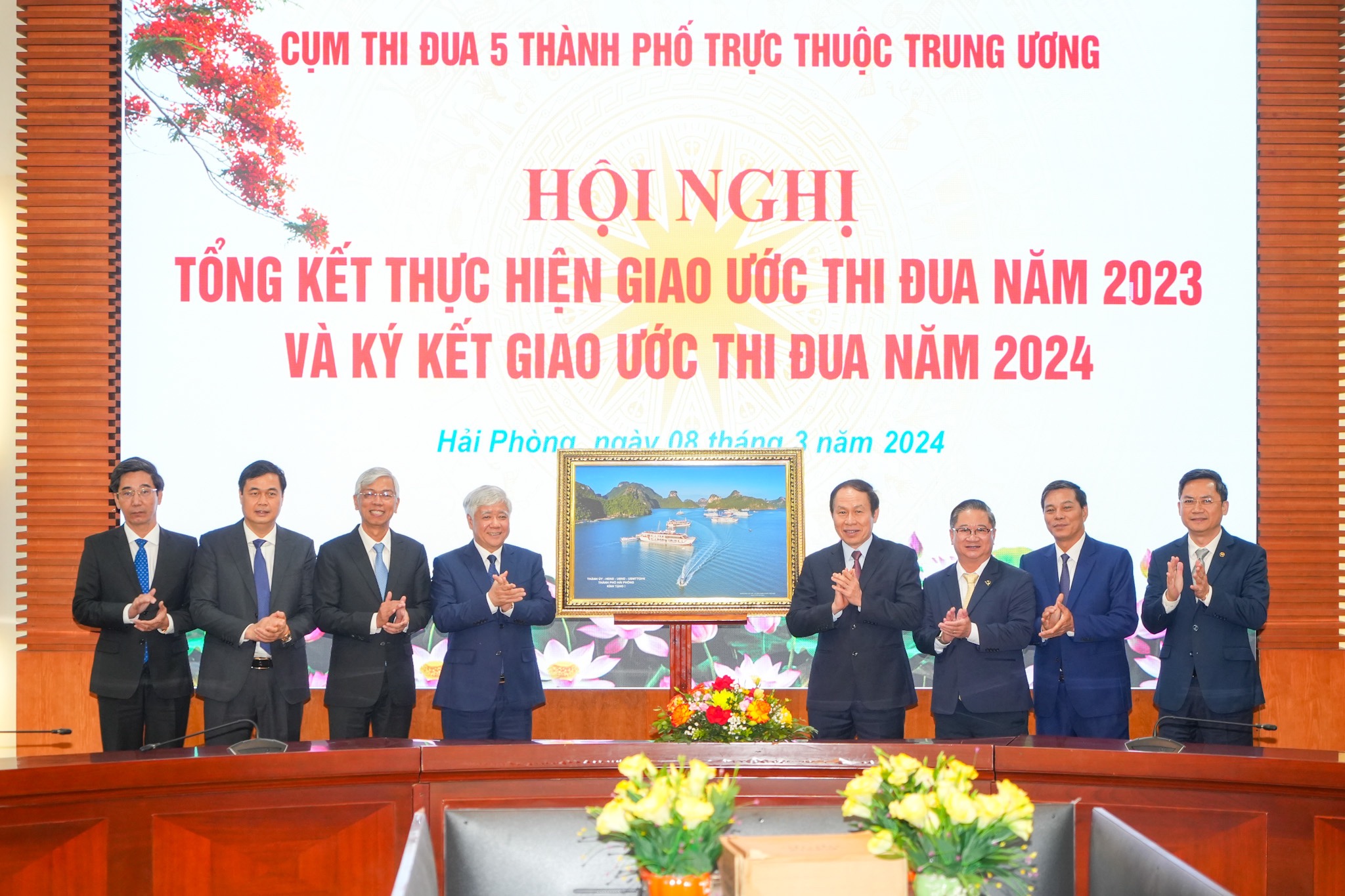 Lãnh đạo 5 thành phố trực thuộc Trung ương Ký kết giao ước thi đua năm 2024.Tại Hội nghị, 5 thành phố trực thuộc Trung ương triển khai ký kết giao ước thi đua năm 2024 và thành phố Hải Phòng bàn giao Cụm trưởng Cụm thi đua 5 thành phố trực thuộc Trung ương cho thành phố Cần Thơ.