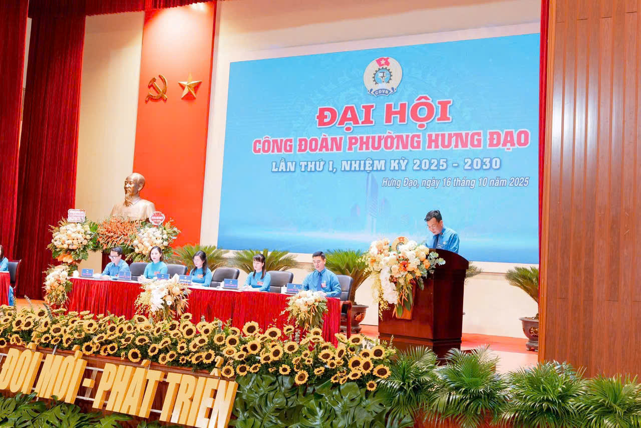Ban Chấp hành Công đoàn phường Hưng Đạo nhiệm kỳ 2025 – 2030 ra mắt Đại hội.Đại hội đã thông qua Nghị quyết nhiệm kỳ 2025 – 2030 với chủ đề: “Đoàn kết – Dân chủ – Kỷ cương – Đổi mới – Phát triển”, xác định 07 chỉ tiêu trọng tâm và 04 khâu đột phá, thể hiện quyết tâm của tập thể cán bộ, đoàn viên, người lao động phường trong việc nâng cao hiệu quả hoạt động Công đoàn, góp phần xây dựng phường Hưng Đạo phát triển bền vững./.