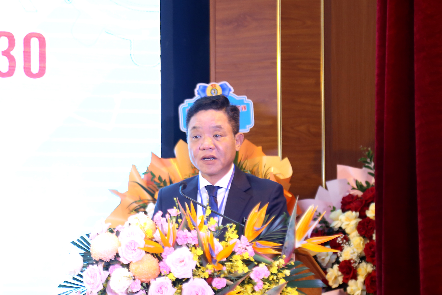 Phó Chủ tịch Ủy ban Mặt trận Tổ quốc Việt Nam thành phố, Chủ tịch Liên đoàn Lao động thành phố Nguyễn Anh Tuân tặng hoa chúc mừng Đại hội.