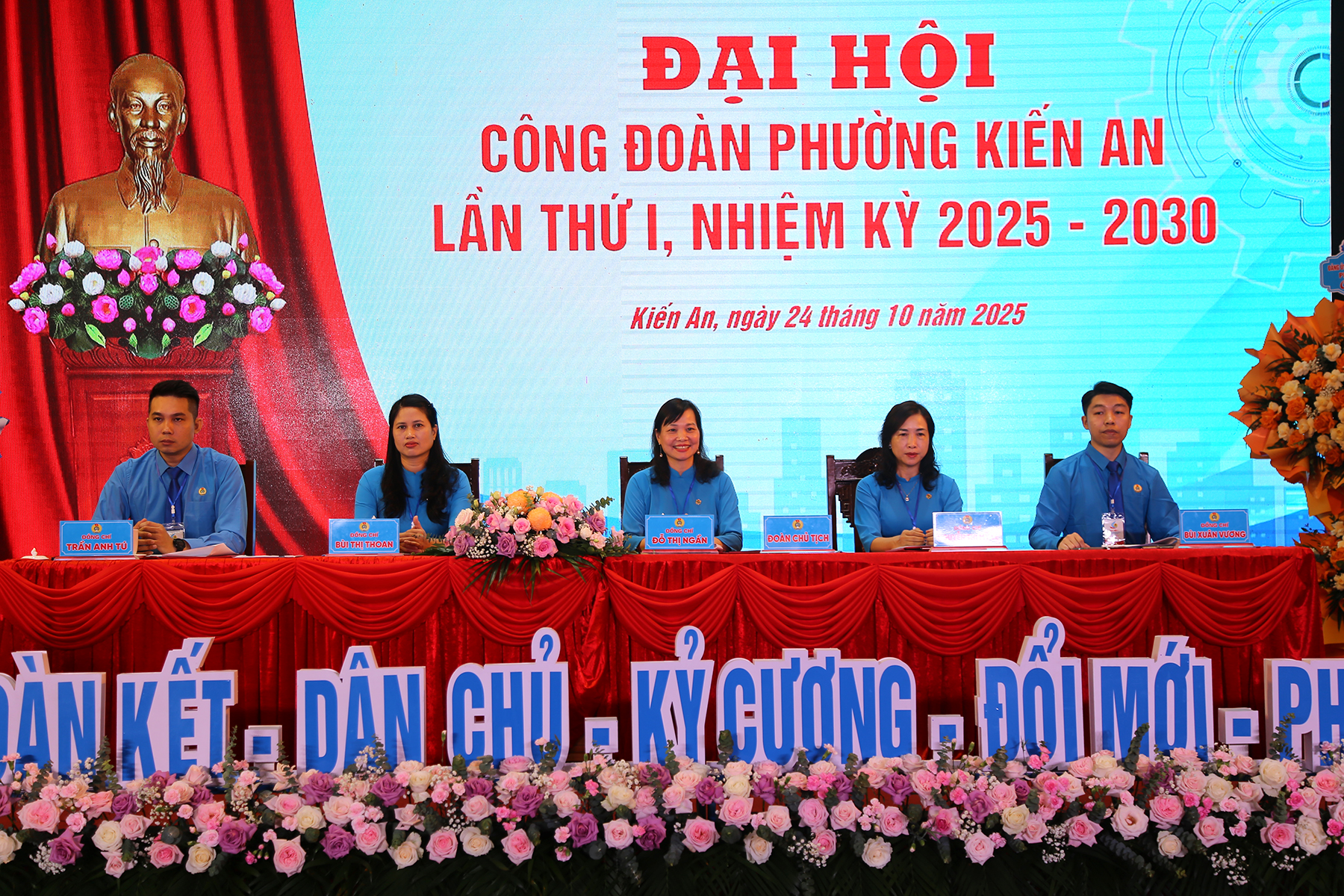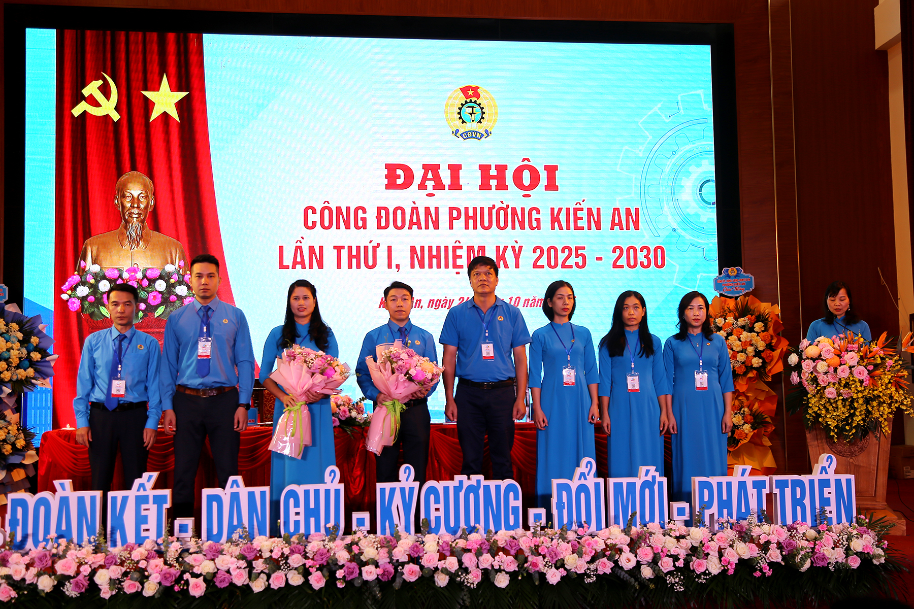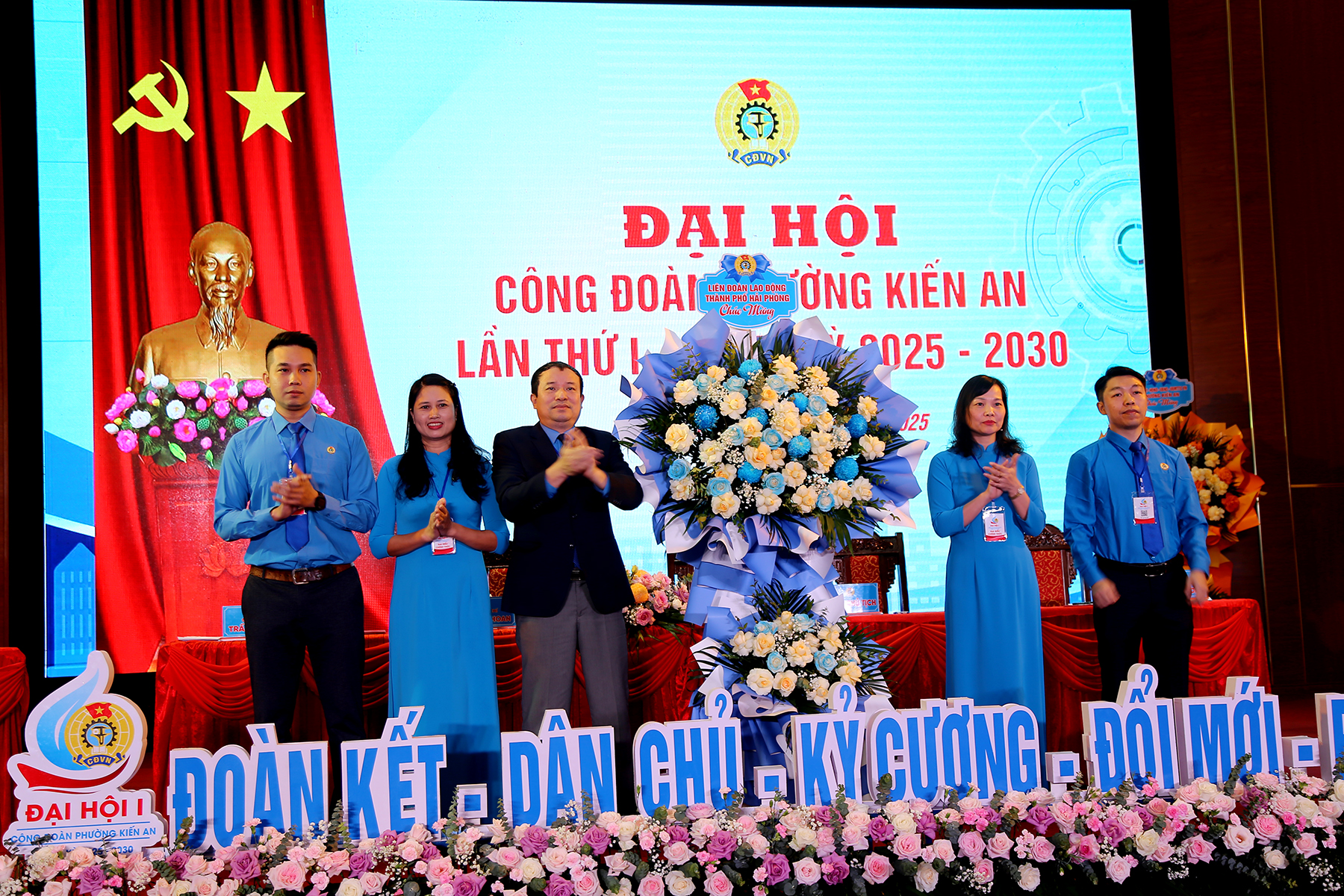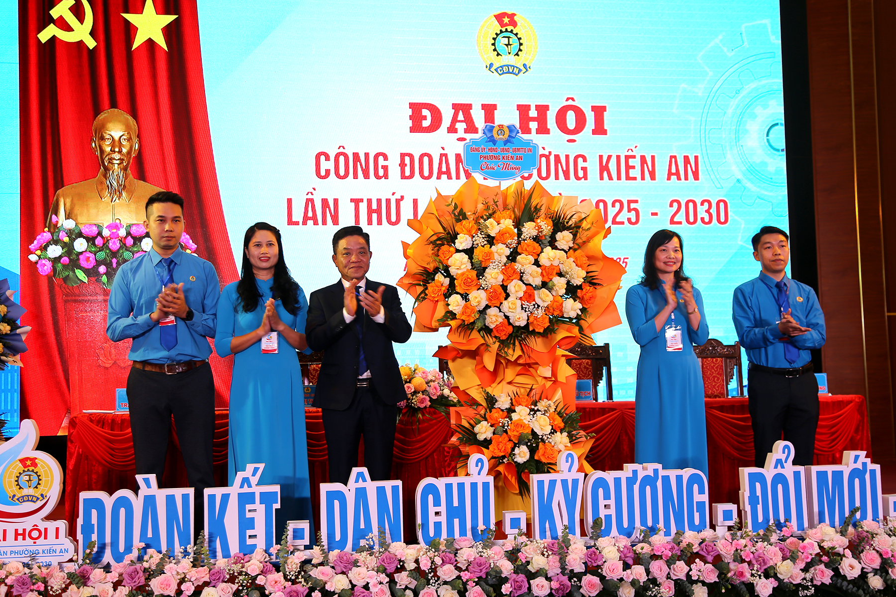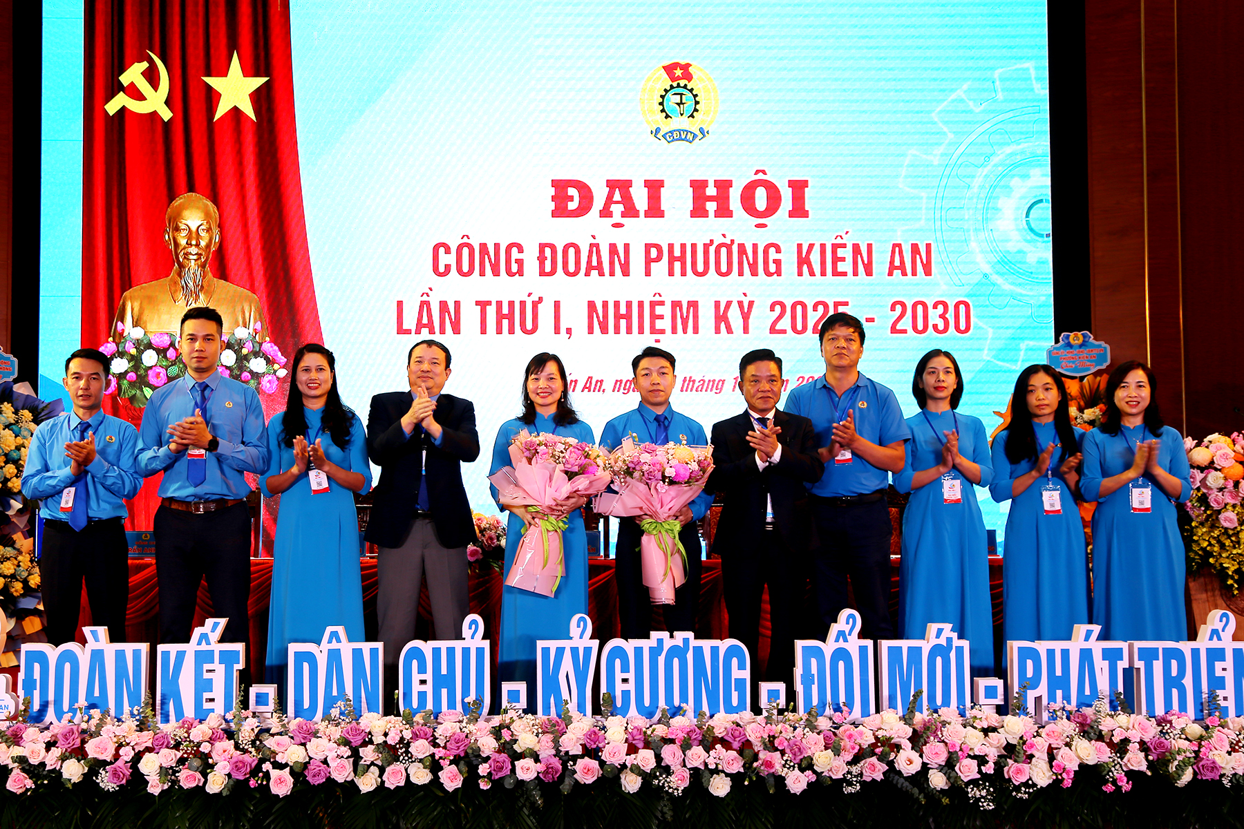 Lãnh đạo Liên đoàn Lao động thành phố và lãnh đạo phường tặng hoa chúc mừng Đại hộiTheo Quyết định của Ban Thường vụ Liên đoàn Lao động thành phố, Ban Chấp hành, Ban Thường vụ, Ủy ban Kiểm tra và các chức danh Chủ tịch, Phó Chủ tịch Công đoàn phường Kiến An nhiệm kỳ 2025 – 2030 gồm 8 đồng chí. Đồng thời, Ban Thường vụ Liên đoàn Lao động thành phố chỉ định 2 đại biểu dự Đại hội Công đoàn thành phố lần thứ nhất.