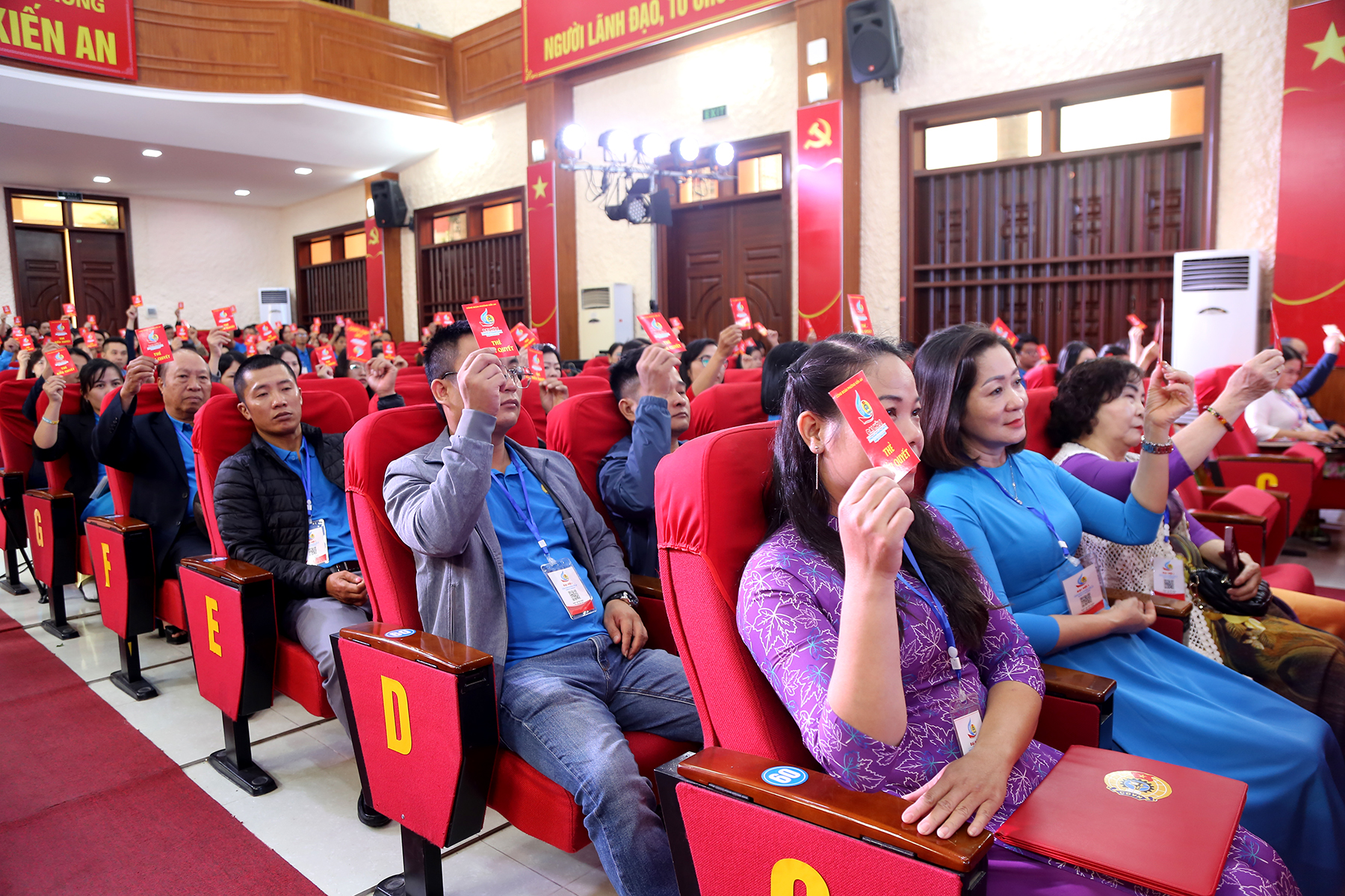 Đại biểu biểu quyết thông qua Nghị quyết tại Đại hội.