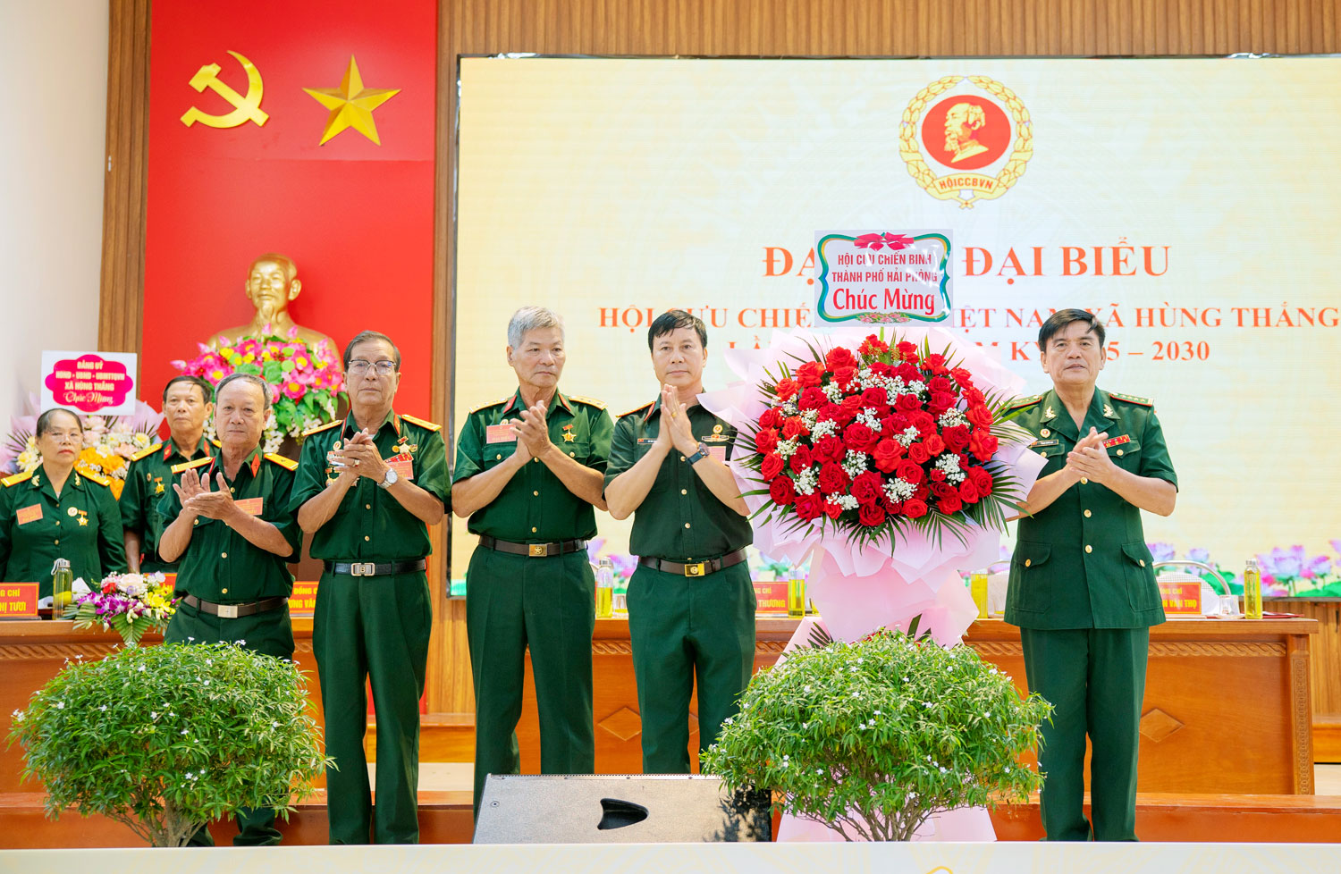 Đồng chí Phạm Công Lục, Phó Chủ tịch Hội Cựu chiến binh thành phố tặng hoa chúc mừng Đại hội.Nhiệm kỳ 2022 - 2025, phát huy phẩm chất “Bộ đội Cụ Hồ”, Hội Cựu chiến binh xã Hùng Thắng đã đoàn kết, nỗ lực hoàn thành toàn diện các chỉ tiêu Nghị quyết Đại hội đề ra. Công tác chính trị tư tưởng được chú trọng; các phong trào thi đua được duy trì hiệu quả. Phong trào “Cựu chiến binh giúp nhau giảm nghèo, làm kinh tế giỏi” đạt nhiều kết quả thiết thực: toàn Hội có 8 mô hình kinh tế trang trại, 4 mô hình sản xuất kinh doanh, 2 Câu lạc bộ làm kinh tế giỏi, tỷ lệ hộ khá và giàu đạt 24,38%, không còn hộ hội viên nghèo. Hội duy trì “Quỹ đồng đội” hơn 112 triệu đồng, dư nợ ủy thác tại Ngân hàng Chính sách xã hội gần 20 tỷ đồng phục vụ phát triển sản xuất.