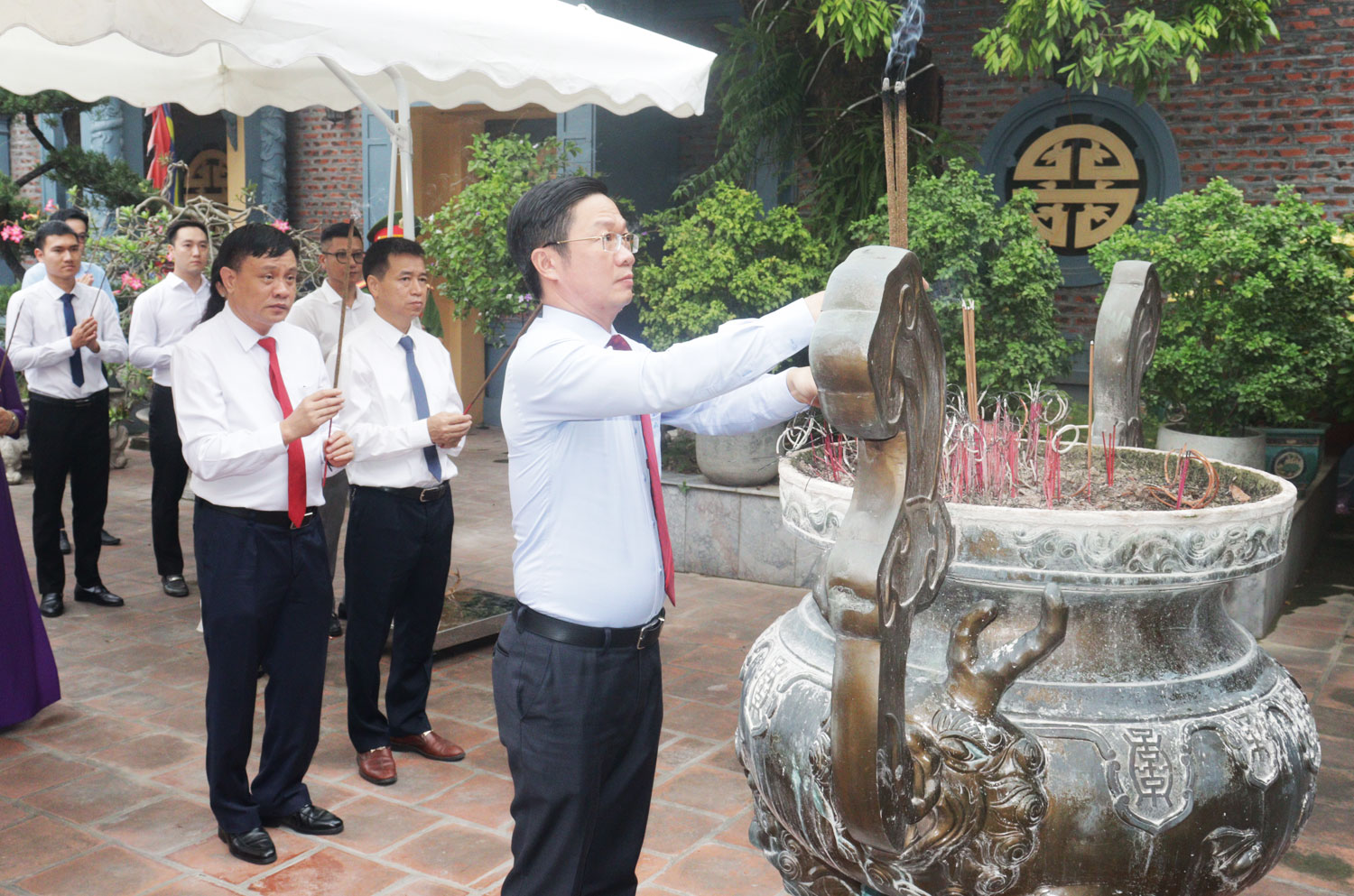 Đoàn dâng hương tại di tích Đền Nghè.Đoàn tới dâng hương tại Di tích Đền Nghè - Di tích lịch sử được Bộ Văn hoá, Thể thao và Du lịch xếp hạng cấp Quốc gia từ năm 1975, là nơi thờ Nữ tướng Lê Chân, một nữ tướng tài ba, lập nhiều chiến công vang dội trong cuộc khởi nghĩa Hai Bà Trưng, được Trưng Vương phong chức “Chưởng quân binh quyền nội bộ”, giao trọng trách trấn giữ miền Hải Tần.