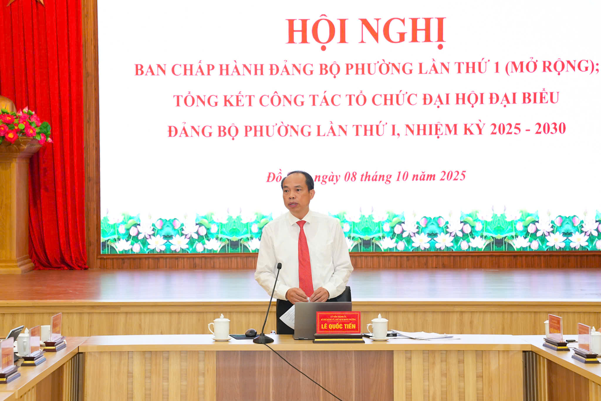 Đồng chí Lê Quốc Tiến, Bí thư Đảng ủy, Chủ tịch HĐND phường chủ trì Hội nghị. Quý III năm 2025, công tác lãnh đạo, chỉ đạo, điều hành của Đảng ủy bám sát chỉ đạo của thành phố, có nhiều đổi mới, quyết liệt, chủ động, trách nhiệm, phân công rõ người rõ việc, có sản phẩm cụ thể gắn với trách nhiệm, phân công rõ người rõ việc, có sản phẩm cụ thể gắn với trách nhiệm của người đứng đầu; hệ thống chính trị đoàn kết, thống nhất, Nhân dân tin tưởng, đồng thuận với sự lãnh đạo, điều hành của cấp ủy, chính quyền địa phương.
