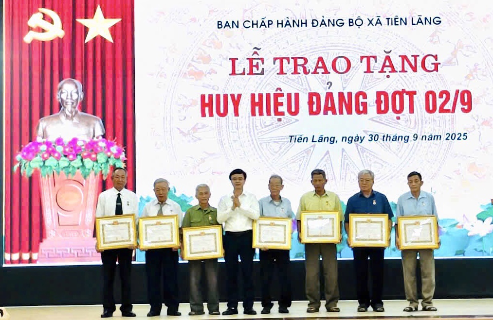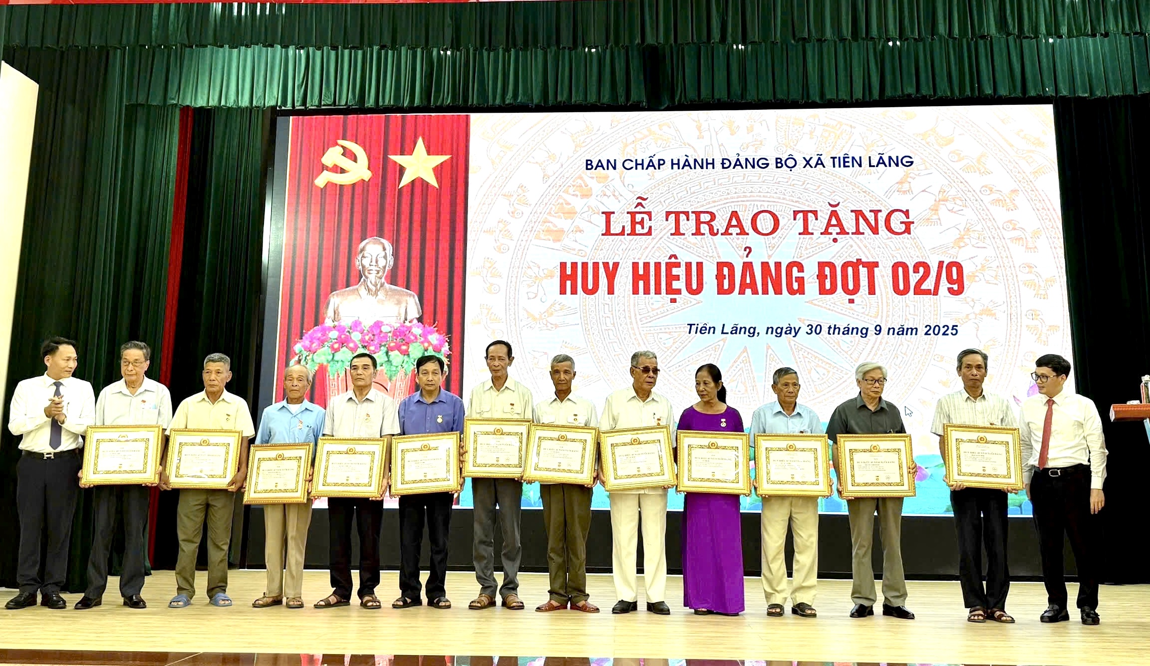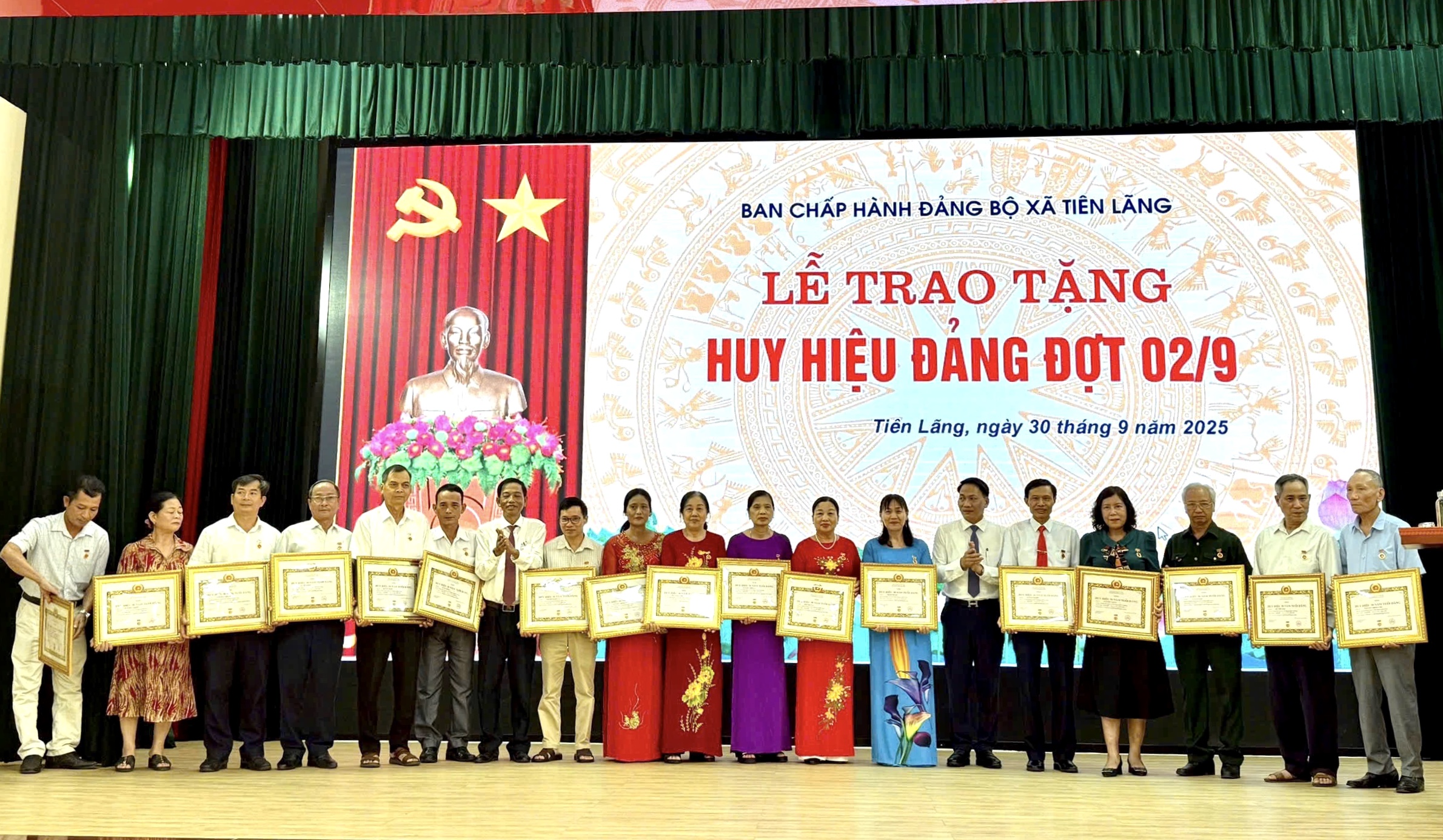 Đợt 02/9/2025, Đảng bộ xã Tiên Lãng có 64 đảng viên được vinh dự đón nhận Huy hiệu của Đảng, trong đó có 9 đồng chí được trao tặng Huy hiệu 65 năm, 60 năm tuổi Đảng; 7 đồng chí được trao tặng Huy hiệu 55 năm, 50 năm tuổi Đảng; 12 đồng chí được trao tặng Huy hiệu 45 năm tuổi Đảng; 16 đồng chí được trao tặng Huy hiệu 40 năm tuổi Đảng và 20 đồng chí được trao tặng Huy hiệu 30 năm tuổi Đảng.