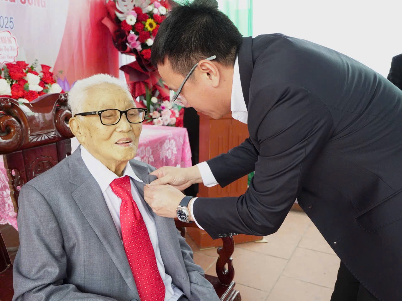 Đảng ủy xã Vĩnh Thuận tổ chức trao Huy hiệu 80 năm và 60 năm tuổi Đảng cho đảng viên cao tuổi tại nhà riêng
