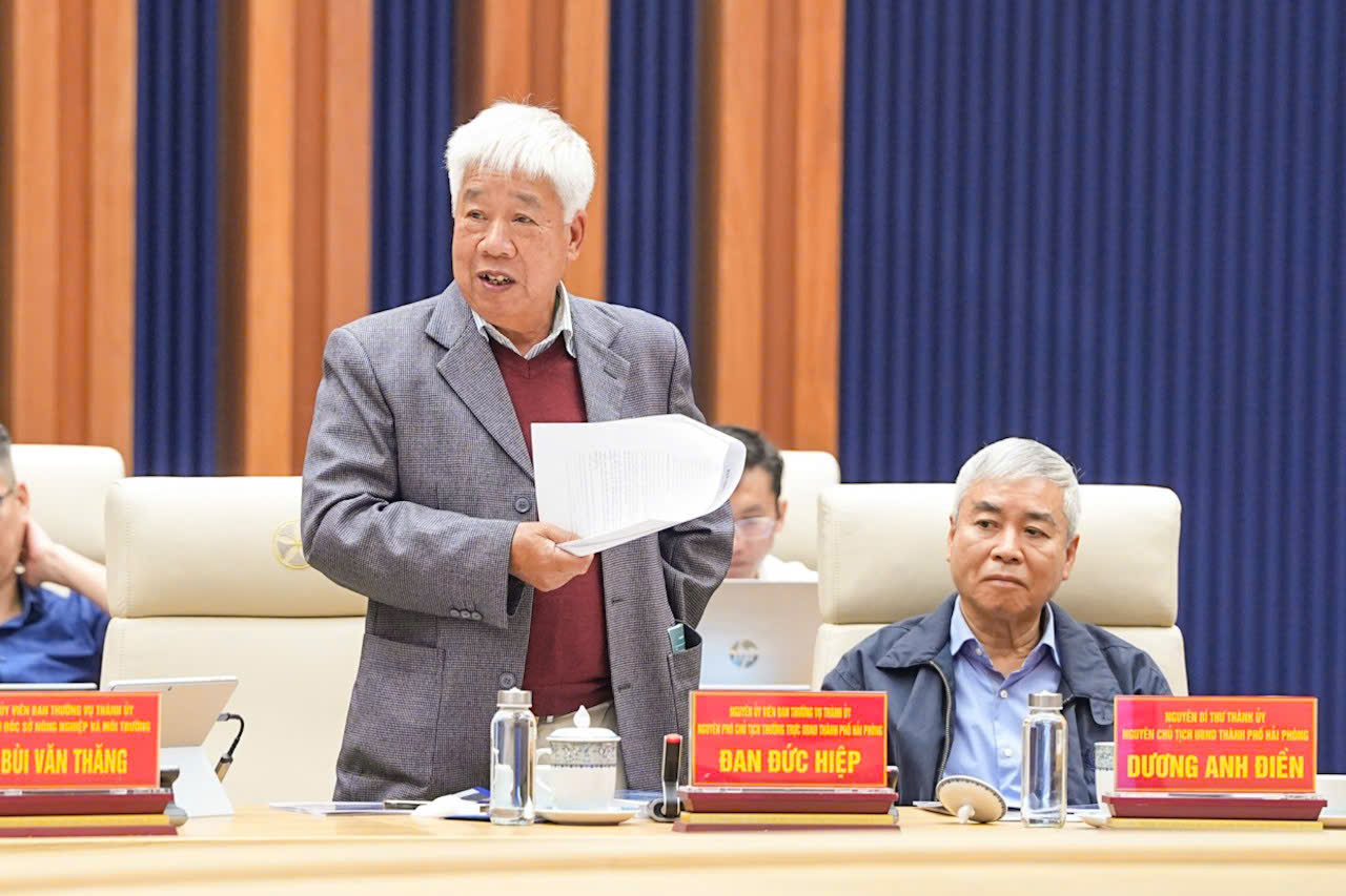 Đồng chí Dương Anh Điền, nguyên Bí thư Thành ủy, nguyên Chủ tịch UBND thành phố đóng góp ý kiến tại cuộc họp.Tại cuộc họp, các đại biểu đã đóng góp nhiều ý kiến xoay quanh phương pháp tiếp cận, mục tiêu, nguyên tắc và căn cứ pháp lý trong điều chỉnh quy hoạch thành phố. Nhiều ý kiến nhấn mạnh quan điểm phát triển của Hải Phòng phải bám sát định hướng, chủ trương của Đảng, Nhà nước và phù hợp với các quy hoạch cấp trên; bảo đảm sự đồng bộ với tầm nhìn phát triển đất nước, các chiến lược quốc gia, Quy hoạch vùng Đồng bằng sông Hồng thời kỳ 2021–2030, tầm nhìn đến năm 2050, cũng như Nghị quyết Đại hội Đảng bộ thành phố nhiệm kỳ 2025–2030 và các Luật mới được Quốc hội thông qua tại Kỳ họp thứ 10.
