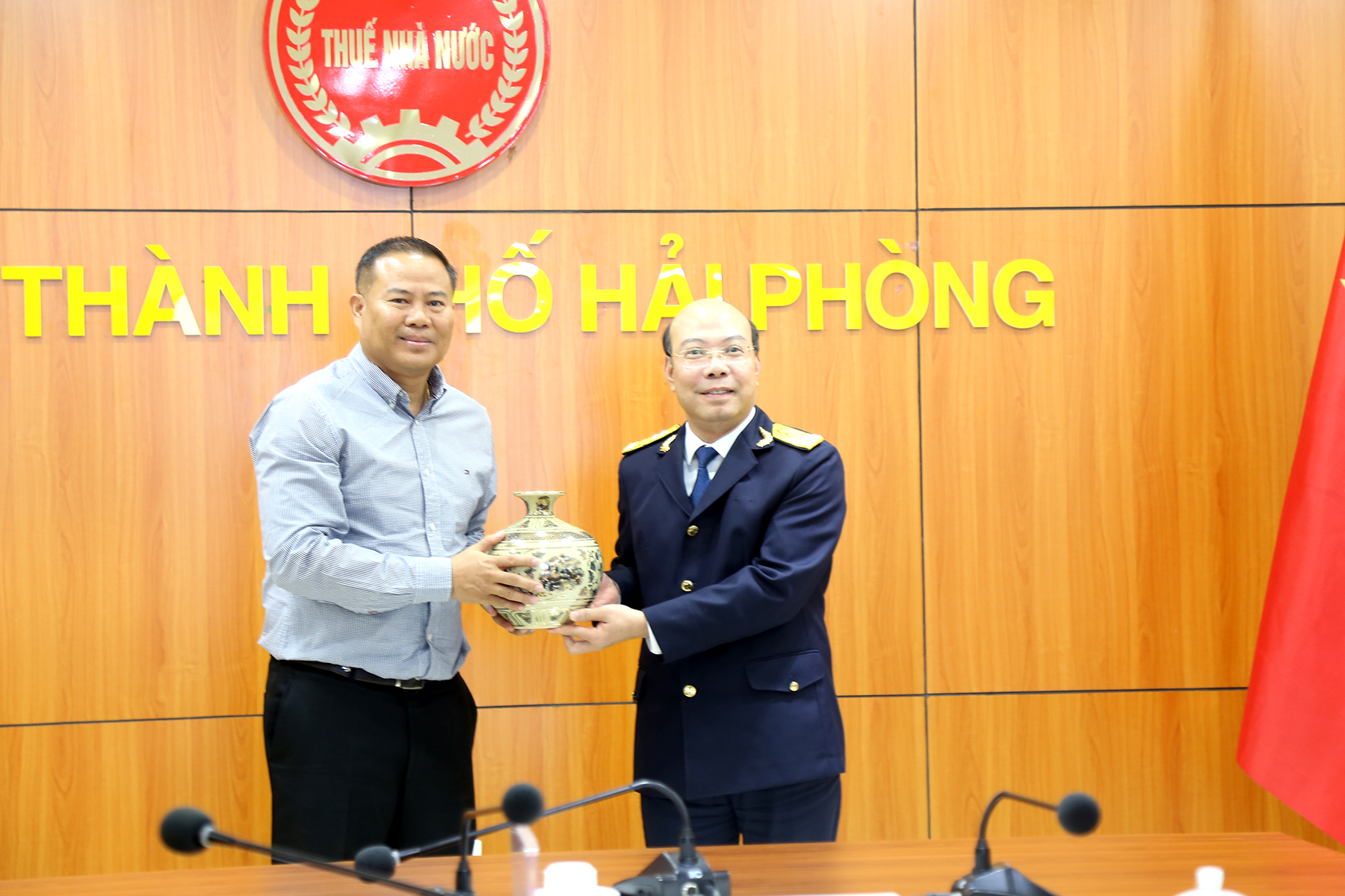 Tại chương trình làm việc, Thuế thành phố Hải Phòng đã trao đổi với Đoàn công tác Vụ Thuế Lào về nhiều kinh nghiệm trong quản lý thuế, gồm: đẩy mạnh tuyên truyền, hỗ trợ người nộp thuế theo phương pháp kê khai; ứng dụng công nghệ thông tin và dữ liệu người nộp thuế; tăng cường thanh tra, kiểm tra; nâng cao năng lực đội ngũ công chức thuế.