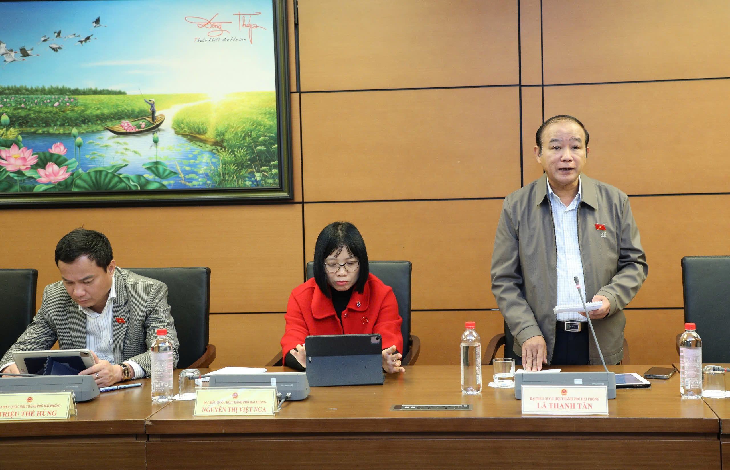 Đại biểu Quốc hội thành phố Hải Phòng tham gia ý kiến thảo luận tổ.Đặc biệt, khi Quốc hội thảo luận về dự thảo Văn kiện Đại hội XIV, Đoàn Hải Phòng có 6 lượt phát biểu, nhấn mạnh đột phá thể chế, phát triển kinh tế tư nhân là động lực quan trọng nhất, quan tâm thiết chế văn hóa cơ sở, và định hướng phát triển công nghiệp quốc phòng.