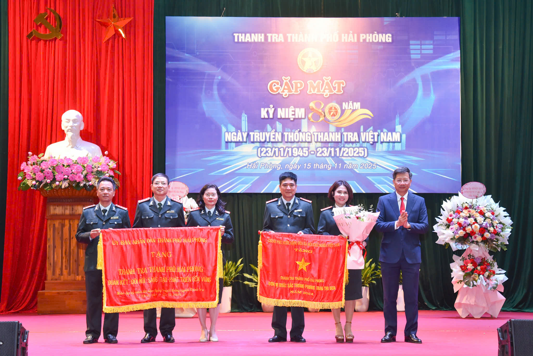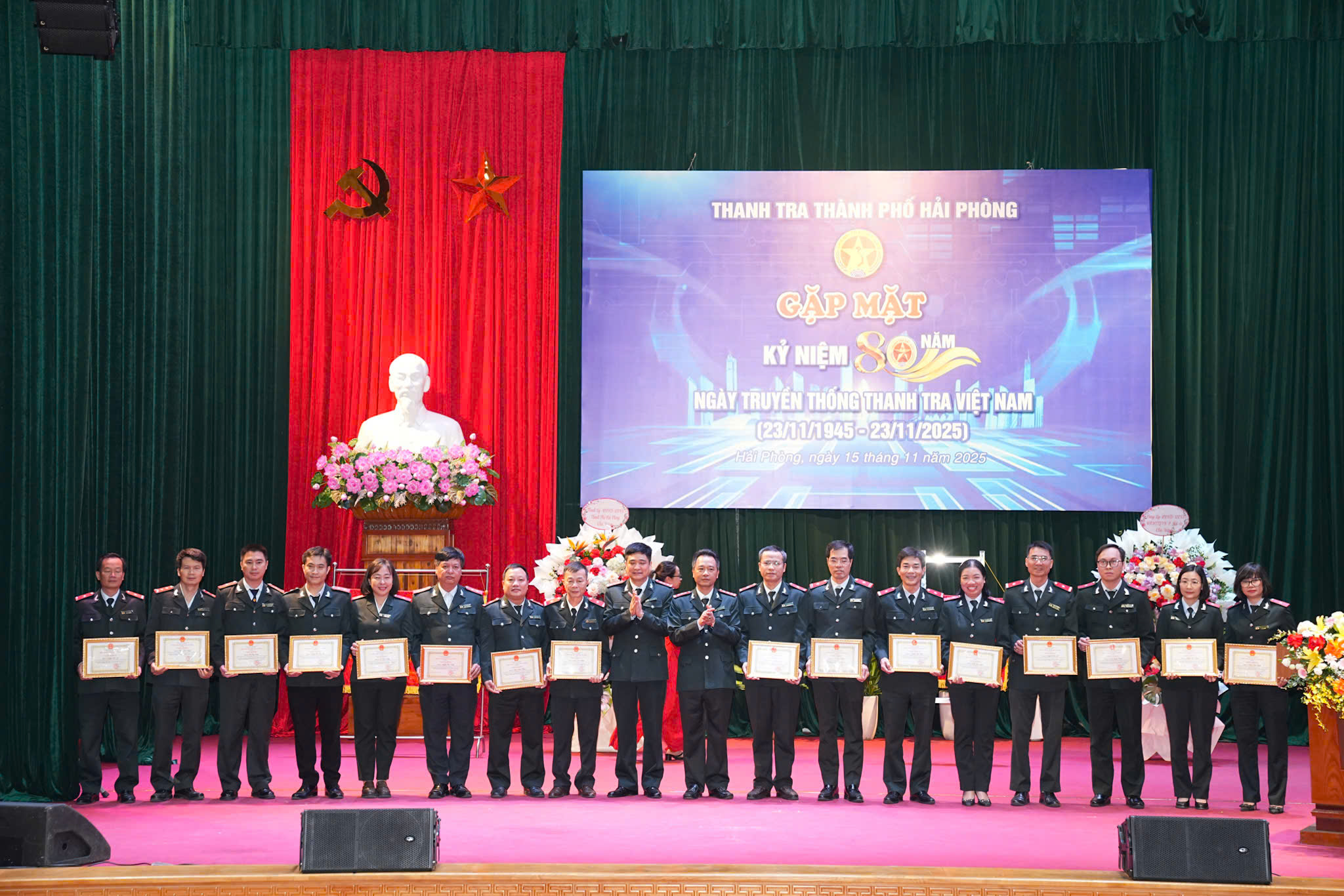 (Haiphong.gov.vn) – Sáng 15/11, Thanh tra thành phố tổ chức gặp mặt kỷ niệm 80 năm Ngày truyền thống ngành Thanh tra Việt Nam (23/11/1945 – 23/11/2025). Tới dự có các đồng chí: Lê Anh Quân - Ủy viên Ban Thường vụ Thành ủy, Phó Chủ tịch Thường trực UBND thành phố. Tham dự có nguyên lãnh đạo, cán bộ hưu trí Thanh tra thành phố Hải Phòng và Thanh tra tỉnh Hải Dương qua các thời kỳ và toàn thể cán bộ, công chức, người lao động Thanh tra thành phố.