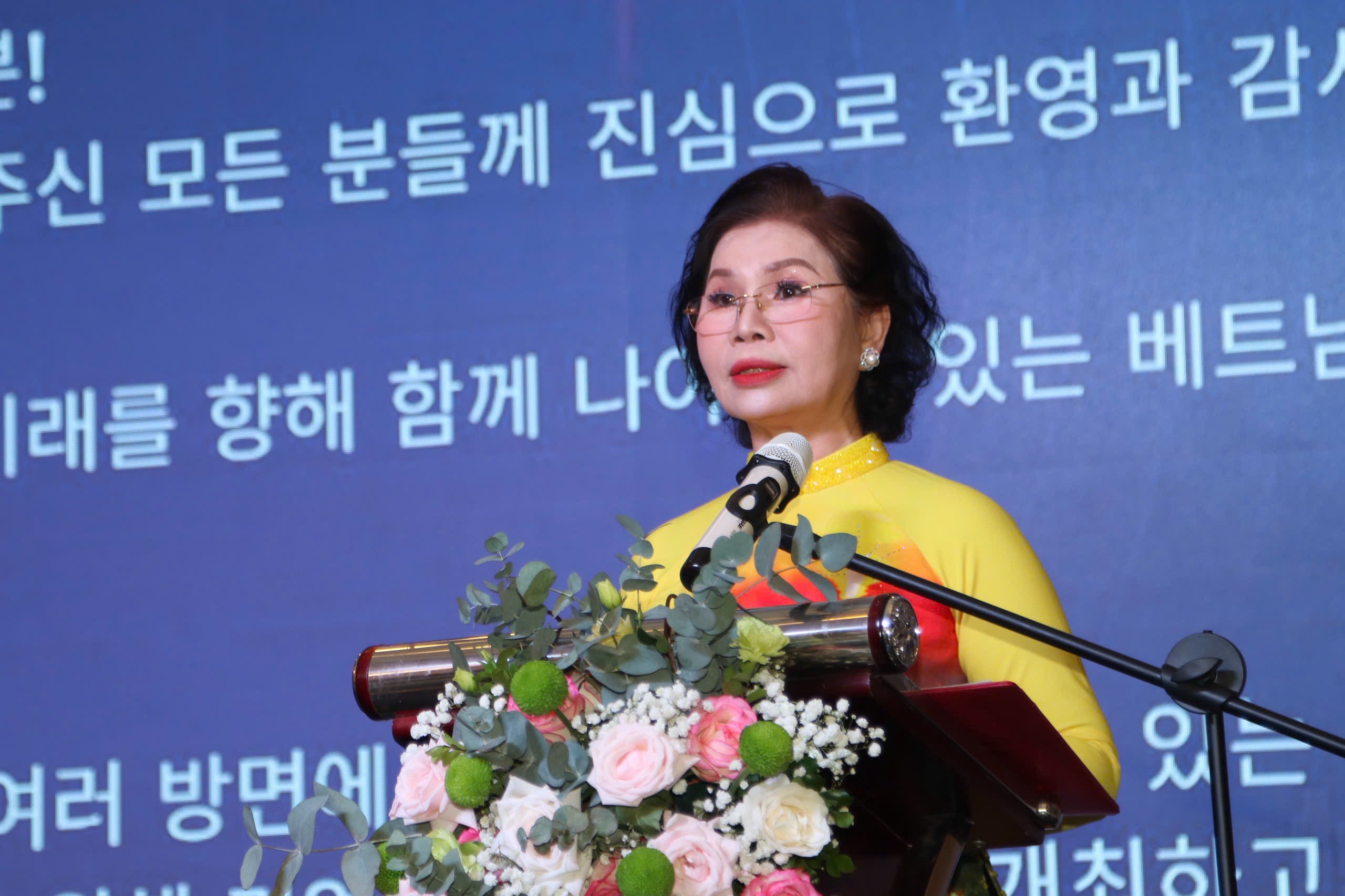 Bà Nguyễn Thị Minh Hà, Chủ tịch CLB doanh nghiệp Việt Nam Hàn Quốc phát biểu khai mạcChương trình giao lưu lần này là nhịp cầu kết nối thêm tình hữu nghị, sẻ chia văn hóa và mở ra những cơ hội hợp tác mới, góp phần vun đắp mối quan hệ gắn bó giữa cộng đồng người Việt và người Hàn tại Hải Phòng.