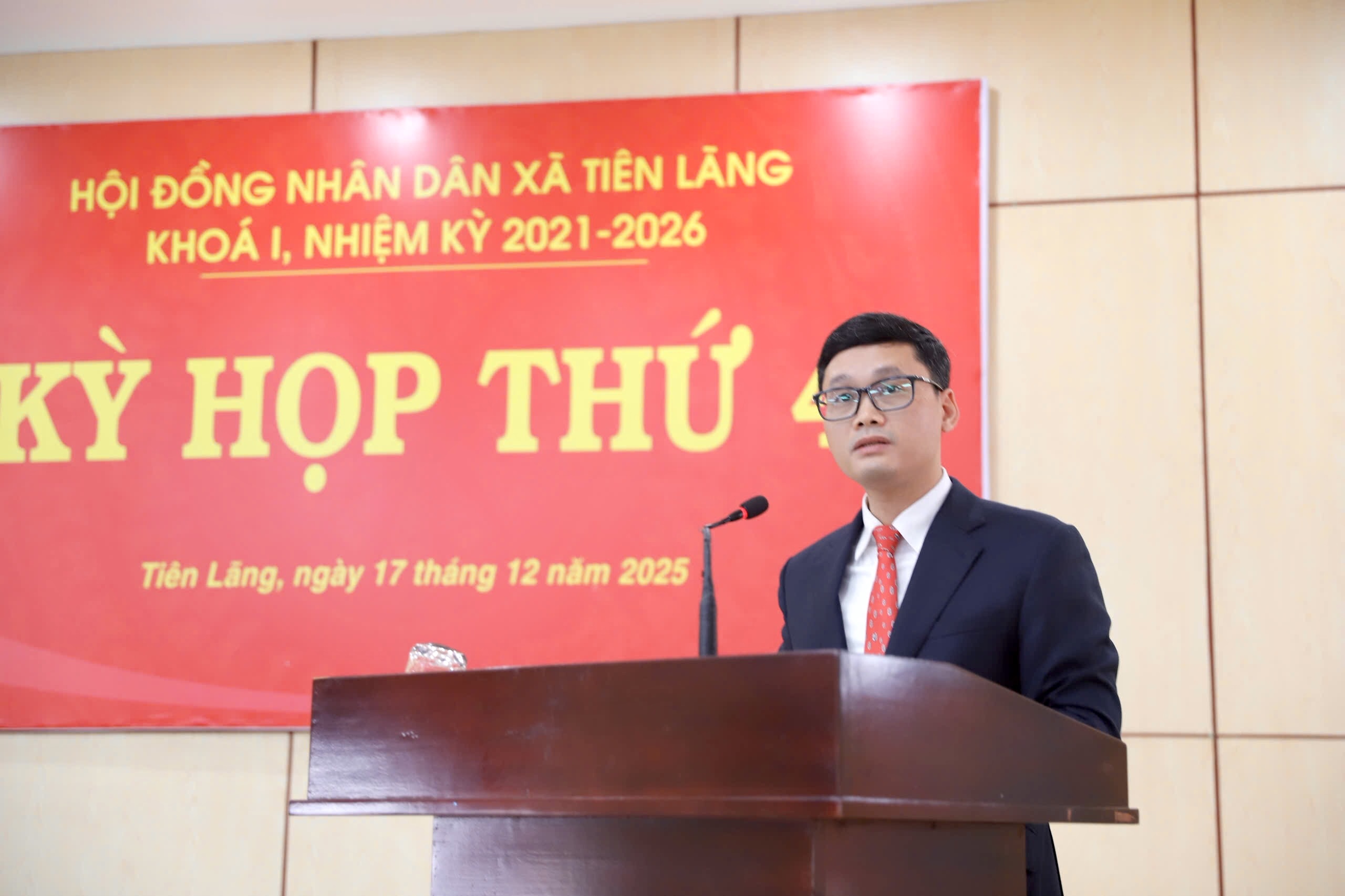 Đồng chí Phạm Minh Đức, Bí thư Đảng uỷ, Chủ tịch HĐND xã phát biểu tại Kỳ họp.Trong năm, xã đã tổ chức thành công Đại hội Đảng bộ xã Tiên Lãng; đẩy mạnh công tác tuyên truyền Đại hội Đảng bộ thành phố lần thứ I, tiến tới Đại hội Đại biểu toàn quốc lần thứ XIV của Đảng, Đại hội thi đua yêu nước thành phố Hải Phòng lần thứ I (2025 – 2030) và Quốc khánh nước cộng hoà xã hội chủ nghĩa Việt Nam(2/9/1945 – 2/9/2025) và bầu cử đại biểu Quốc hội hoá XVI và bầu cử đại biểu HĐND các cấp nhiệm kỳ 2026 – 2031; tổ chức thành công Đại hội thể dục thể thao xã lần thứ I, 94% số gia đình trên địa bàn xã đạt danh hiệu gia đình văn hoá.