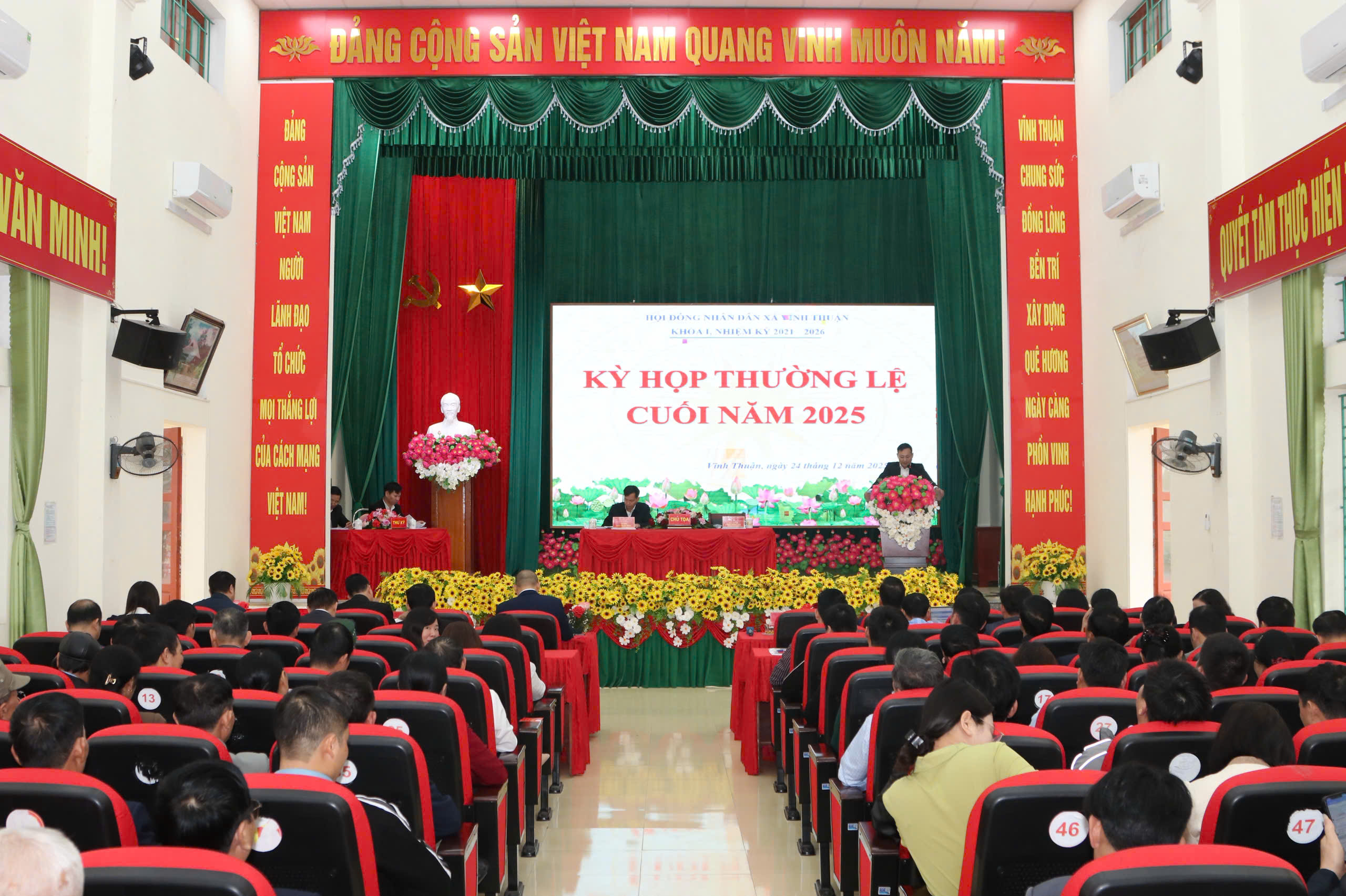 (Haiphong.gov.vn) - Sáng 24/12, Hội đồng nhân dân xã Vĩnh Thuận khóa I, nhiệm kỳ 2021–2026 tổ chức Kỳ họp thường lệ cuối năm 2025 nhằm đánh giá kết quả thực hiện nhiệm vụ năm 2025, đồng thời xem xét, quyết định các nội dung quan trọng liên quan đến phát triển kinh tế – xã hội, quốc phòng – an ninh năm 2026 và định hướng giai đoạn 2026–2030.