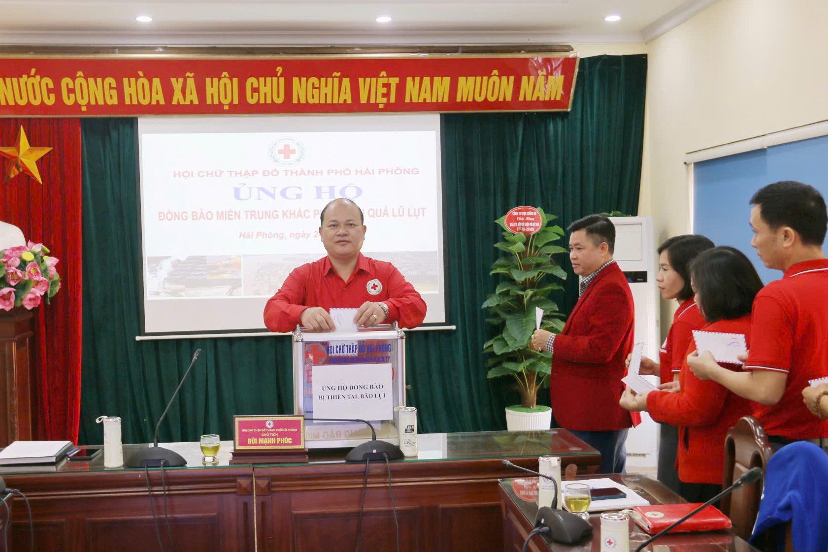 Hội Chữ thập đỏ thành phố Hải Phòng phát động cán bộ, tình nguyện viên ủng hộ các tỉnh bị thiệt hại bởi mưa lũ