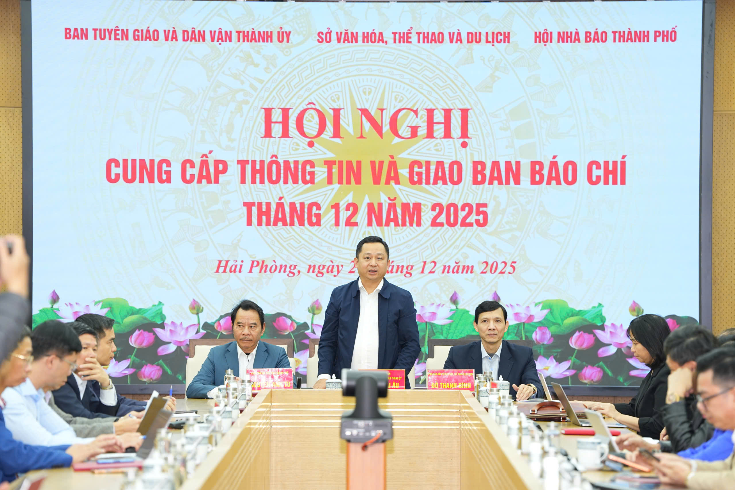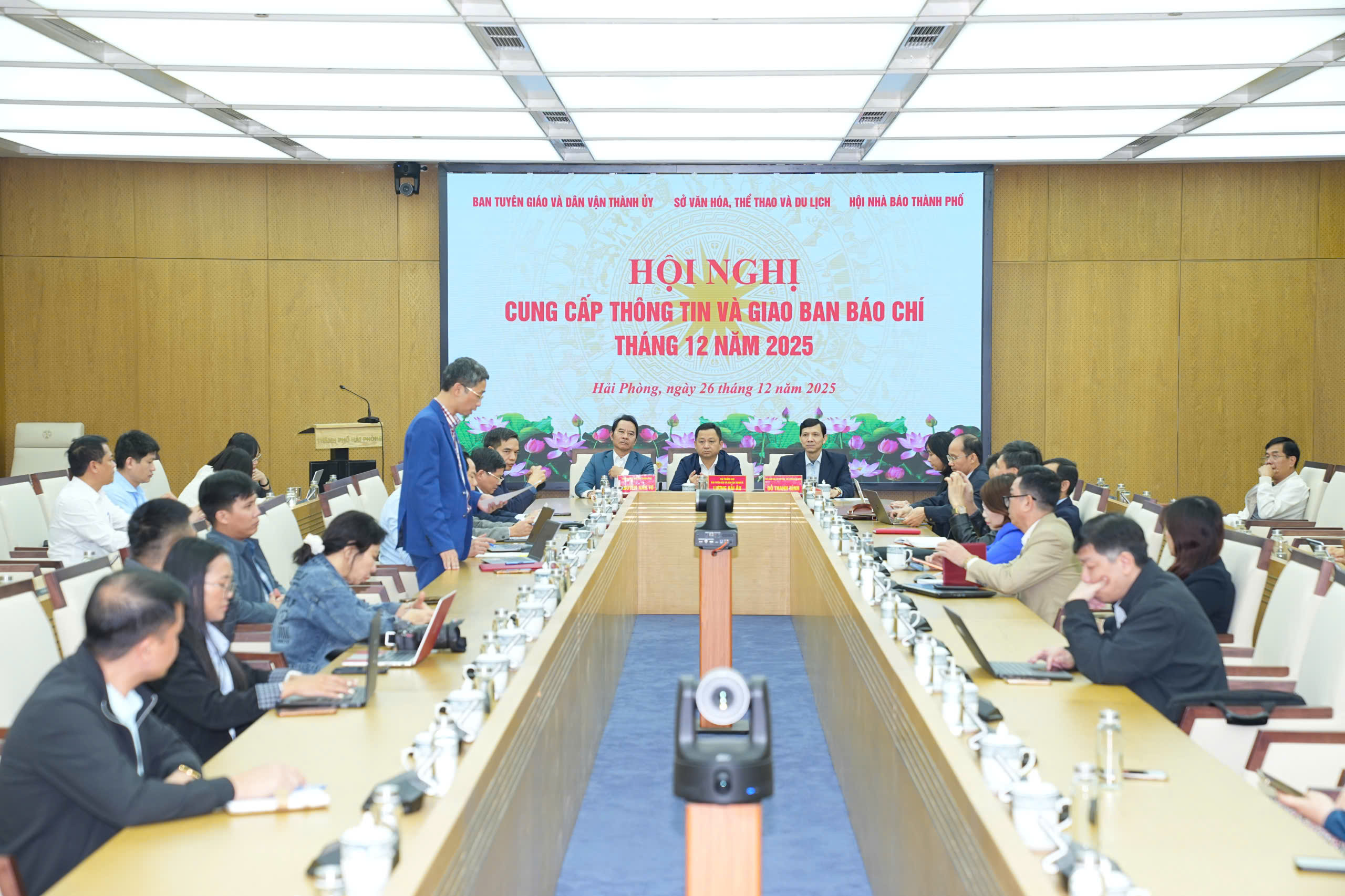 (Haiphong.gov.vn) - Chiều 26/12, Ban Tuyên giáo và Dân vận Thành ủy Hải Phòng chủ trì phối hợp với Sở Văn hóa, Thể thao và Du lịch, Hội Nhà báo thành phố Hải Phòng tổ chức Hội nghị cung cấp thông tin và giao ban báo chí định kỳ tháng 12/2025.