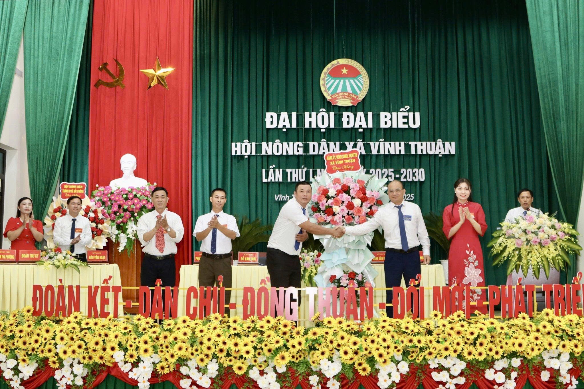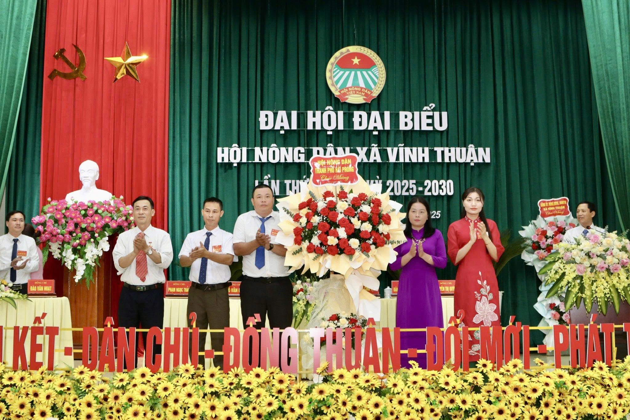 Lãnh đạo Hội Nông dân thành phố và xã tặng hoa chúc mừng Đại hộiNhiệm kỳ 2025–2030, Hội Nông dân xã Vĩnh Thuận đề ra mục tiêu xây dựng tổ chức Hội vững mạnh, phát huy vai trò nông dân trong phát triển nông nghiệp sinh thái, nông thôn hiện đại, nông dân văn minh; phấn đấu mỗi năm kết nạp 50–70 hội viên mới, có trên 50% hội viên đạt danh hiệu sản xuất kinh doanh giỏi, phát triển thêm ít nhất 3 sản phẩm OCOP từ 3 sao trở lên.