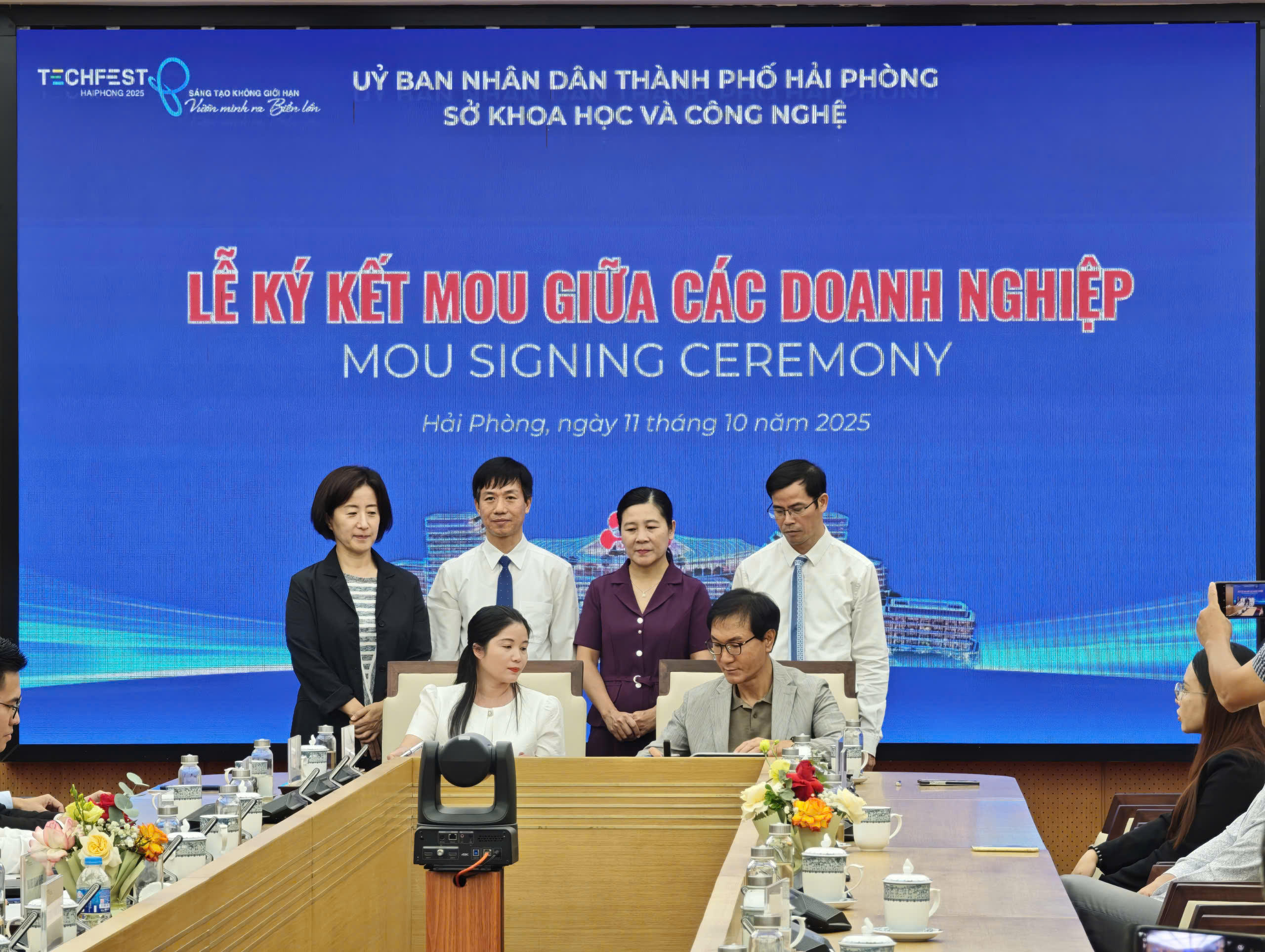 Lễ ký kết Biên bản Ghi nhớ (MOU) giữa các doanh nghiệp diễn ra trong khuôn khổ TECHFEST Hải Phòng 2025.