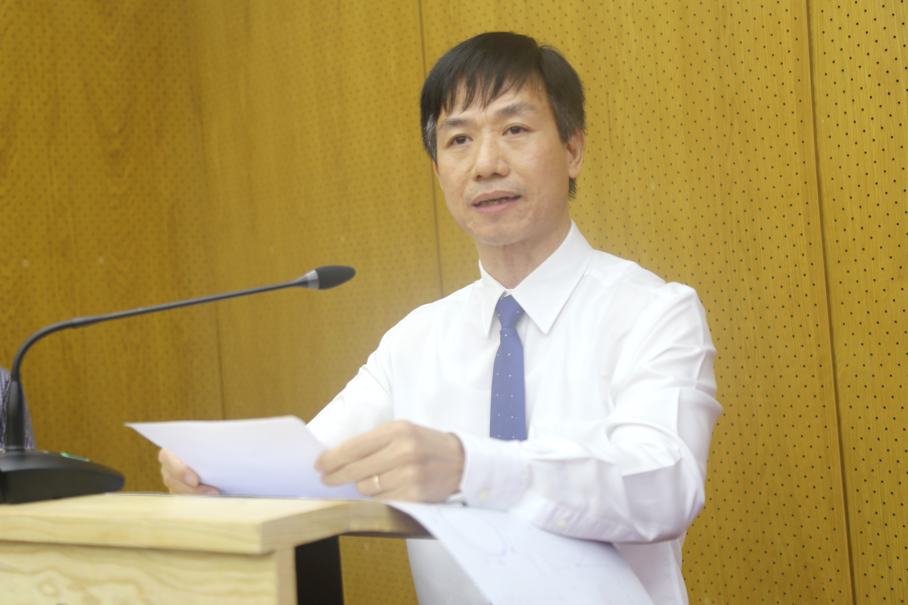 Phó Giám đốc Sở KH&CN Vũ Đại Thắng phát biểu khai mạc Hội thảo “Xây dựng Hải Phòng thành trung tâm nhân lực chất lượng cao ngành điện tử và bán dẫn”.