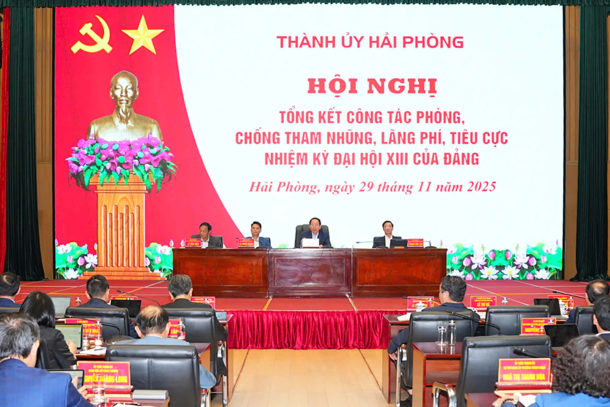 (Haiphong.gov.vn) - Sáng 29/11, đồng chí Lê Tiến Châu, Ủy viên Trung ương Đảng, Bí thư Thành ủy, Trưởng Đoàn ĐBQH Hải Phòng chủ trì Hội nghị tổng kết công tác phòng, chống tham nhũng, lãng phí, tiêu cực nhiệm kỳ Đại hội XIII của Đảng.