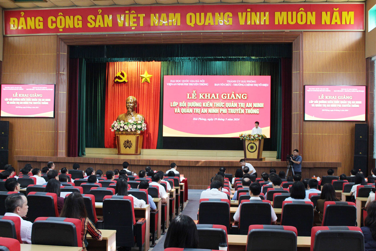 (Haiphong.gov.vn) - Sáng 29/5, tại Trường Chính trị Tô Hiệu, Ban Thường vụ Thành ủy phối hợp với Viện An ninh phi truyền thống, Đại học Quốc gia Hà Nội tổ chức Lễ khai giảng lớp bồi dưỡng kiến thức về “Quản trị an ninh và Quản trị an ninh phi truyền thống” năm 2024.