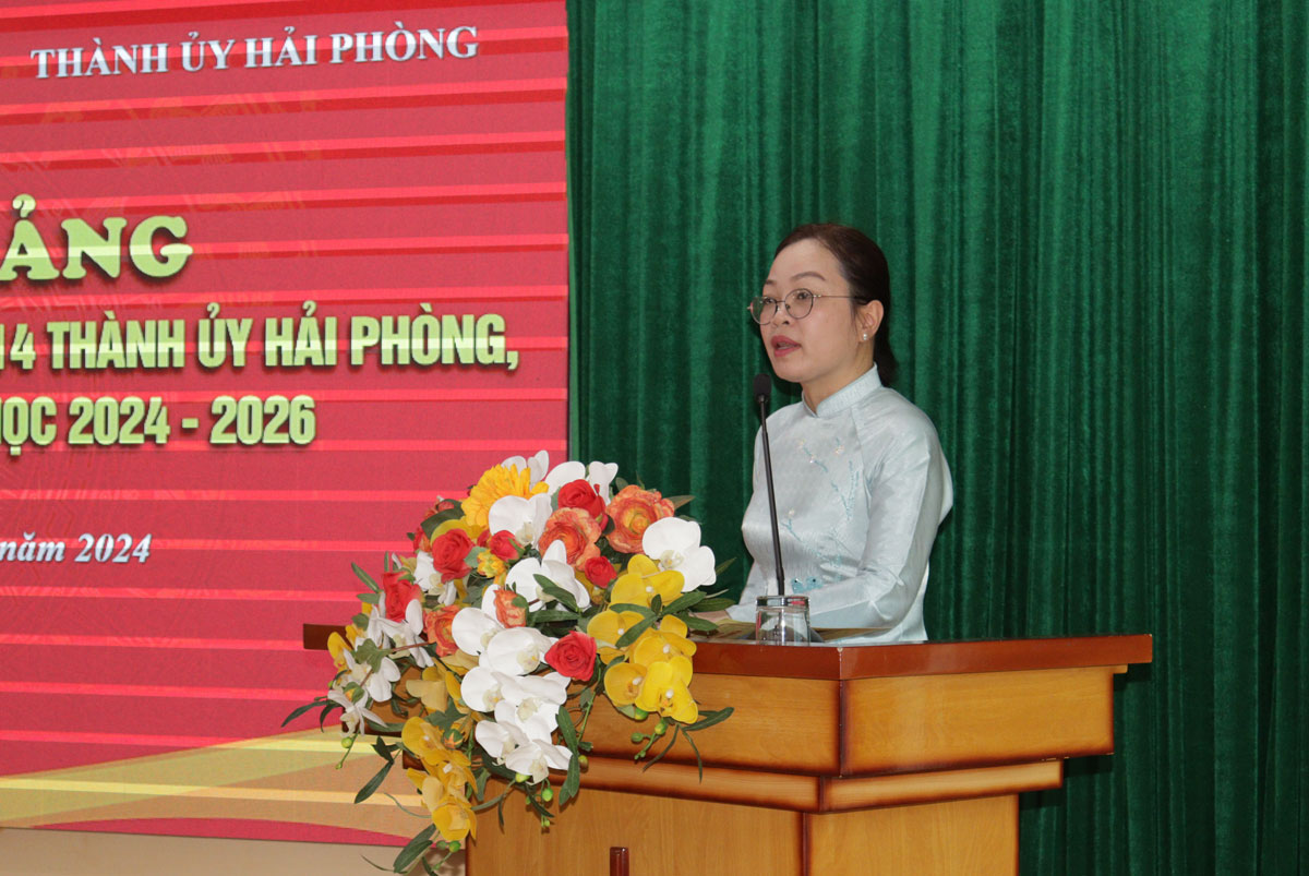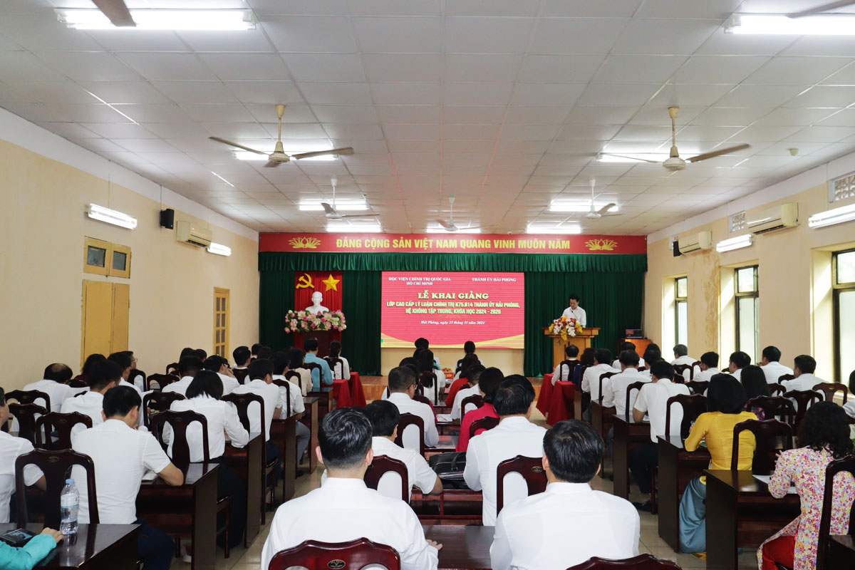 Quang cảnh Lễ khai giảng.Lớp Cao cấp lý luận chính trị, hệ không tập trung K75.B14 Thành uỷ Hải Phòng, khóa học 2024 - 2026 có 60 học viên là cán bộ, lãnh đạo quản lý tại các Sở, ban, ngành, địa phương, đơn vị trên địa bàn thành phố.