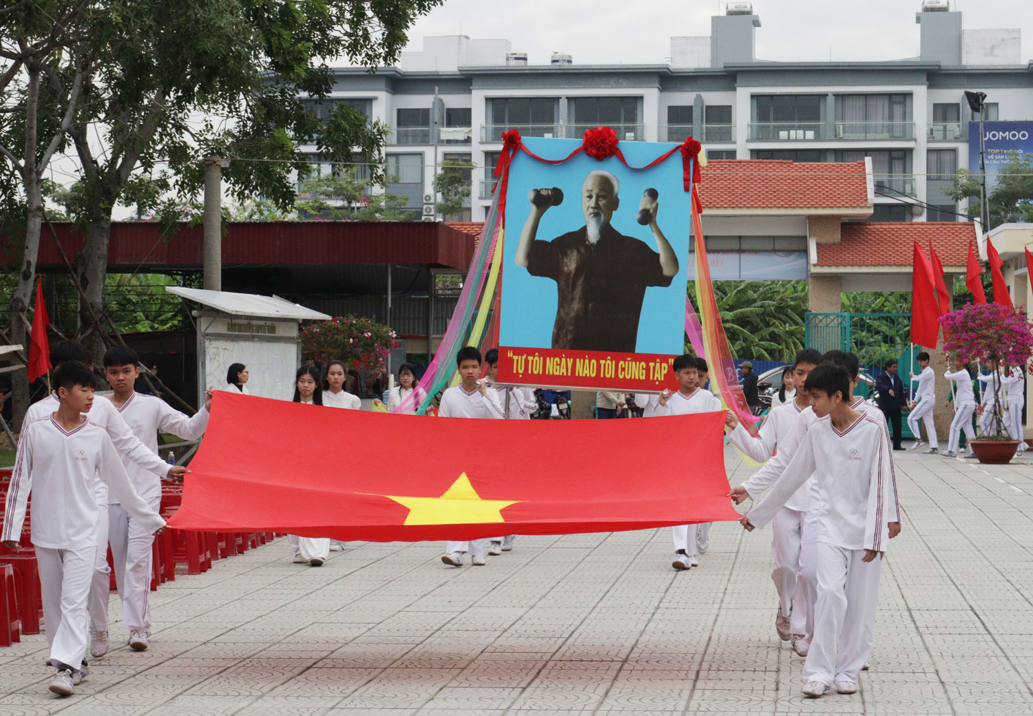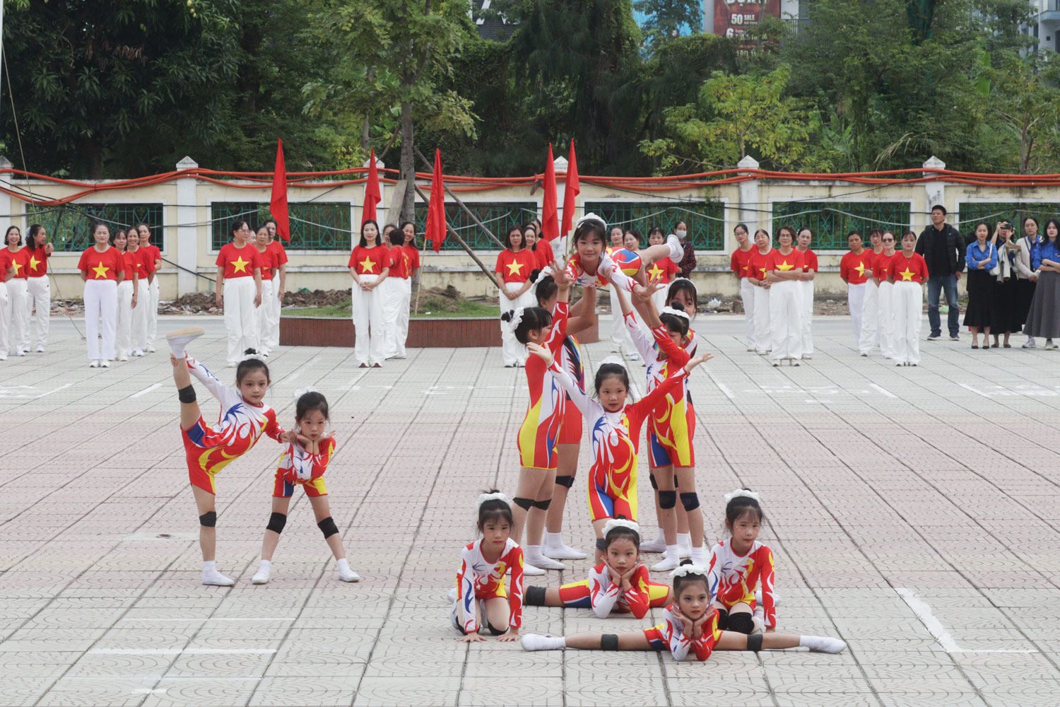 Một số hình ảnh tại Lễ khai mạc.Chủ tịch UBND phường đề nghị các phòng, đơn vị, các tổ chức đoàn thể, trường học, các Tổ dân phố và các thành viên trong Ban Tổ chức Đại hội của phường phối kết hợp chặt chẽ, tổ chức thành công Đại hội Thể dục thể thao phường lần thứ I bảo đảm an toàn, tiết kiệm và đạt kết quả cao nhất; tiếp tục tuyên truyền, động viên các tầng lớp nhân dân, các em học sinh tham gia tập luyện và thi đấu thể dục thể thao, tiếp tục hưởng ứng cuộc vận động “Toàn dân rèn luyện thân thể theo gương Bác Hồ vĩ đại”; nâng cao nhận thức về vai trò, ý nghĩa và tác dụng của luyện tập thể dục thể thao trong việc nâng cao sức khỏe, nâng cao chất lượng cuộc sống của nhân dân, xây dựng lối sống lành mạnh, góp phần xây dựng nếp sống văn hoá, văn minh đô thị; đề nghị đội ngũ trọng tài, vận động viên chấp hành nghiêm nội quy, điều lệ của Ban Tổ chức và giữ vững kỷ luật trong thi đấu, thi đua quyết thắng, giành nhiều thành tích cao trong Đại hội./.