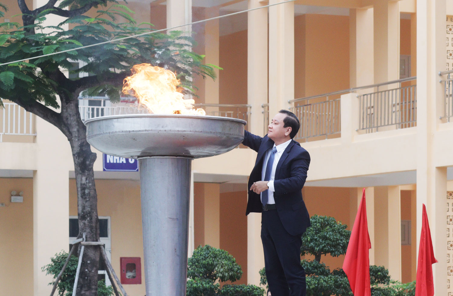 Đồng chí Nguyễn Văn Thành, Bí thư Đảng ủy, Chủ tịch HĐND phường tiến hành nghi thức châm đuốc khai mạc Đại hội.