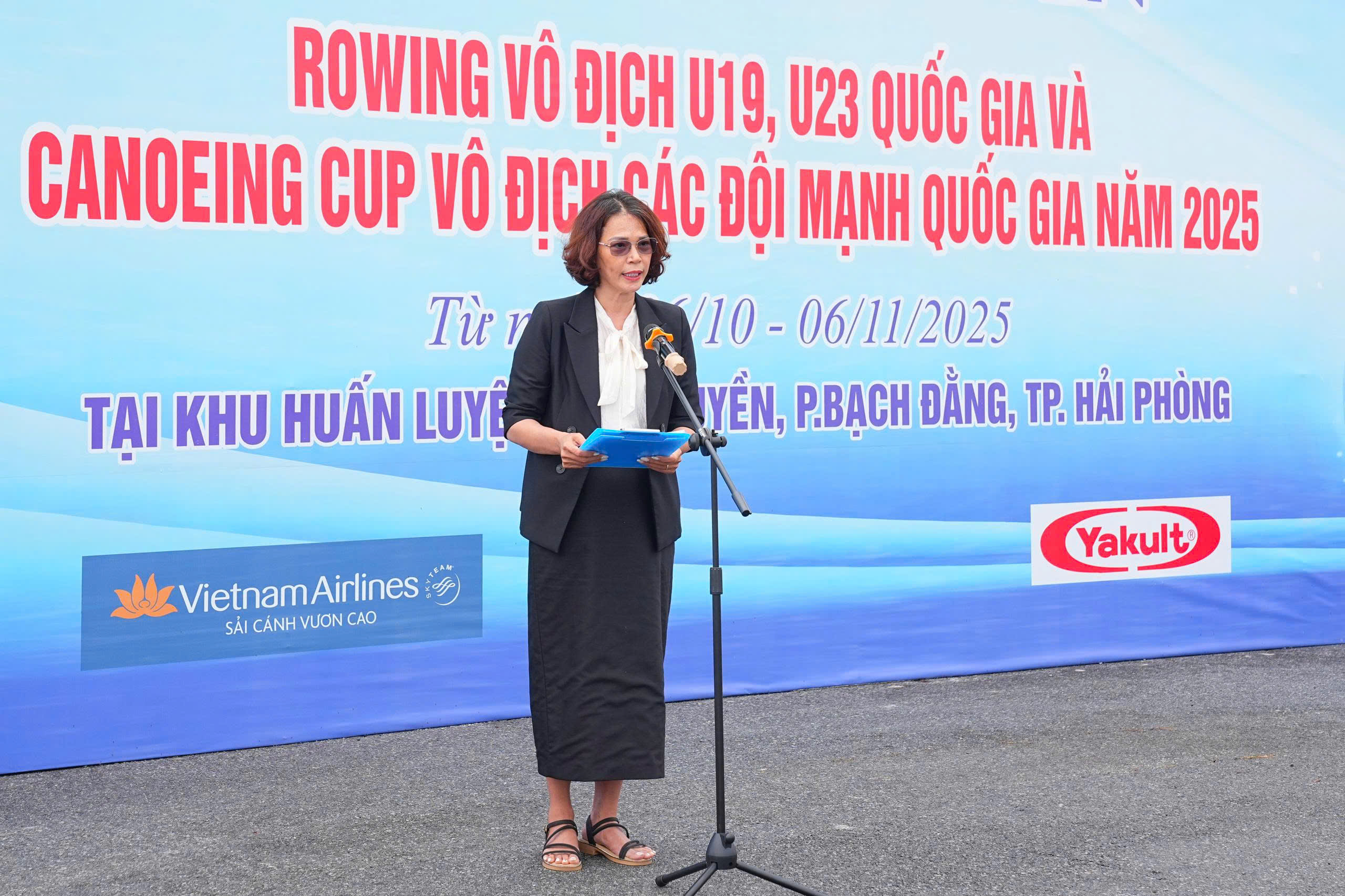Phó Giám đốc Sở Văn hóa, Thể thao và Du lịch Phạm Thị Tô Trang phát biểu khai mạc Giải.Phát biểu khai mạc giải đấu, Phó Giám đốc Sở Văn hóa, Thể thao và Du lịch Phạm Thị Tô Trang - Trưởng Ban Tổ chức Giải nhấn mạnh, Giải Đua thuyền Rowing vô địch U19, U23 quốc gia và Giải Đua thuyền Canoeing Cúp vô địch các đội mạnh quốc gia năm 2025 là hoạt động thể thao quan trọng, góp phần thúc đẩy phong trào tập luyện và thi đấu các môn thể thao dưới nước, đặc biệt trong giới trẻ trên phạm vi toàn quốc. Thông qua các giải đấu, Ban Tổ chức mong muốn phát hiện, tuyển chọn và bồi dưỡng các vận động viên tiềm năng, bổ sung lực lượng cho đội tuyển quốc gia, chuẩn bị tham gia các giải đấu khu vực và quốc tế trong thời gian tới, đồng thời tăng cường giao lưu, học hỏi, nâng cao trình độ chuyên môn giữa các địa phương, đơn vị.