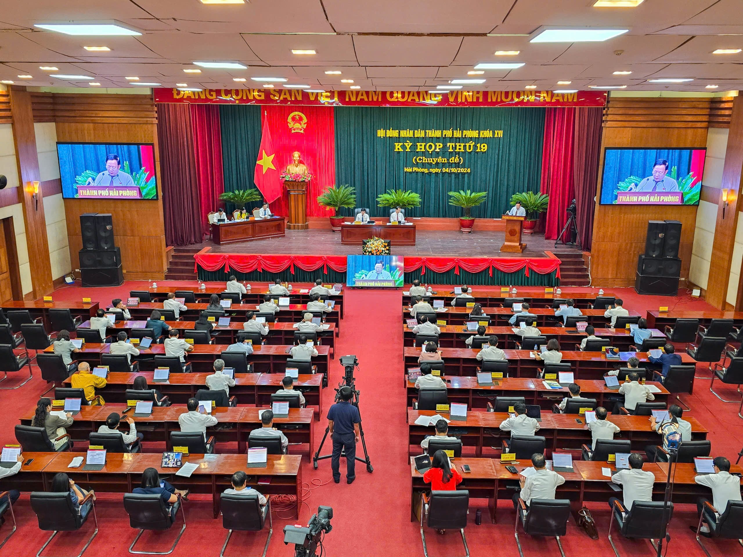 (Haiphong.gov.vn) - Chiều 04/10, tại Trung tâm Hội nghị thành phố, HĐND thành phố tổ chức Kỳ họp thứ 19 (Kỳ họp chuyên đề) HĐND thành phố khóa XVI, nhiệm kỳ 2021 - 2026 để xem xét, quyết định một số nội dung thuộc thẩm quyền nhằm kịp thời triển khai các nhiệm vụ quan trọng, cấp thiết của thành phố trong năm 2024.