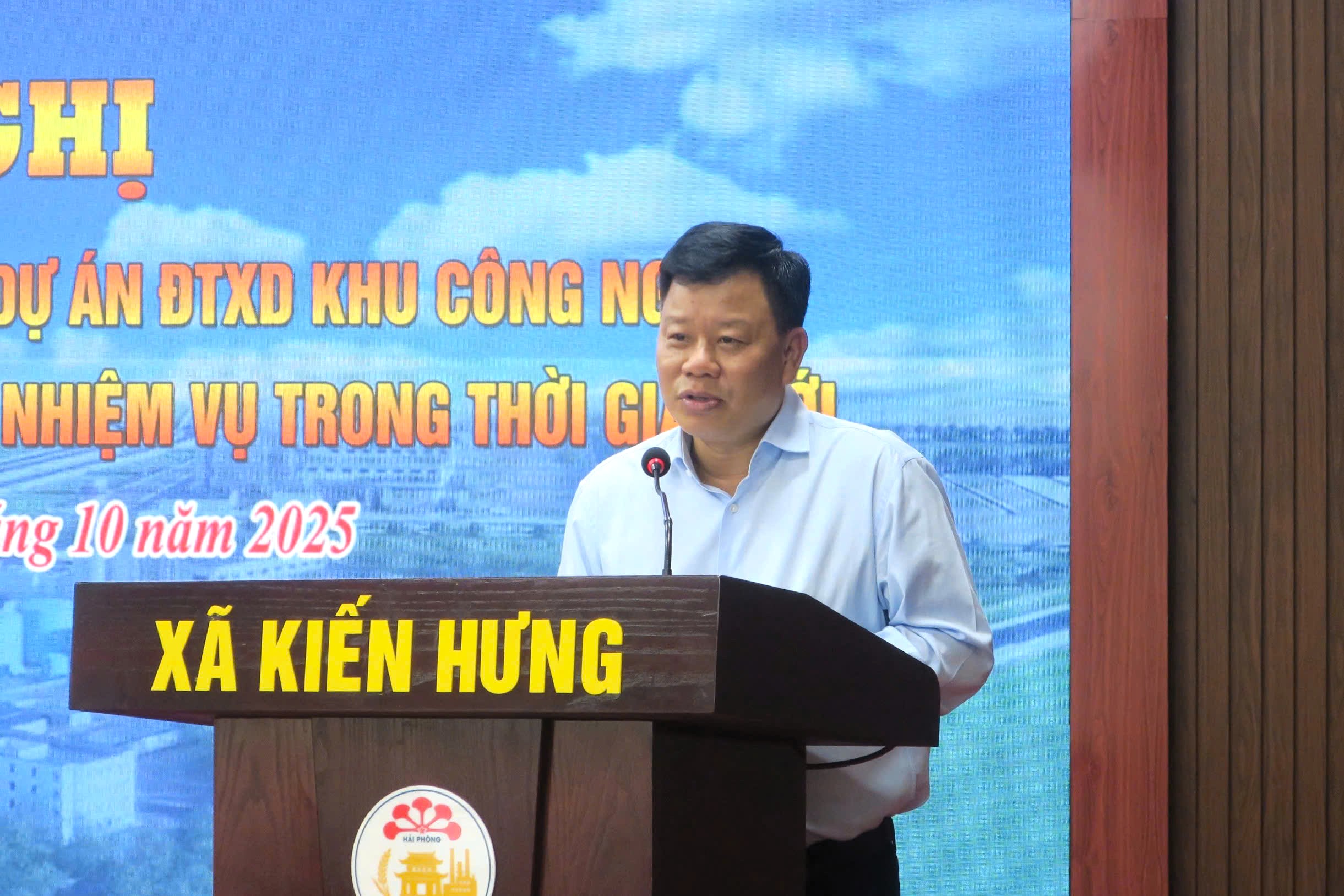 Phát biểu tại Hội nghị, đồng chí Lê Trung Kiên, Ủy viên Ban Thường vụ Thành ủy, Trưởng Ban Quản lý Khu kinh tế Hải Phòng biểu dương, cảm ơn các tập thể, cá nhân đã nỗ lực trong triển khai các dự án trọng điểm, điều đó khẳng định quyết tâm, nỗ lực của cả hệ thống chính trị địa phương. Đồng chí cho rằng, thời điểm hiện nay là cơ hội vàng để thu hút đầu tư, nhất là khi nhiều dự án quy mô lớn của Vingroup cùng các dự án công nghiệp phụ trợ đang được xúc tiến mạnh tại Kiến Hưng, Kiến Hải, Nghi Dương. Thành phố kỳ vọng khu vực này sẽ trở thành động lực phát triển mới, nền tảng hình thành Khu kinh tế phía Nam.