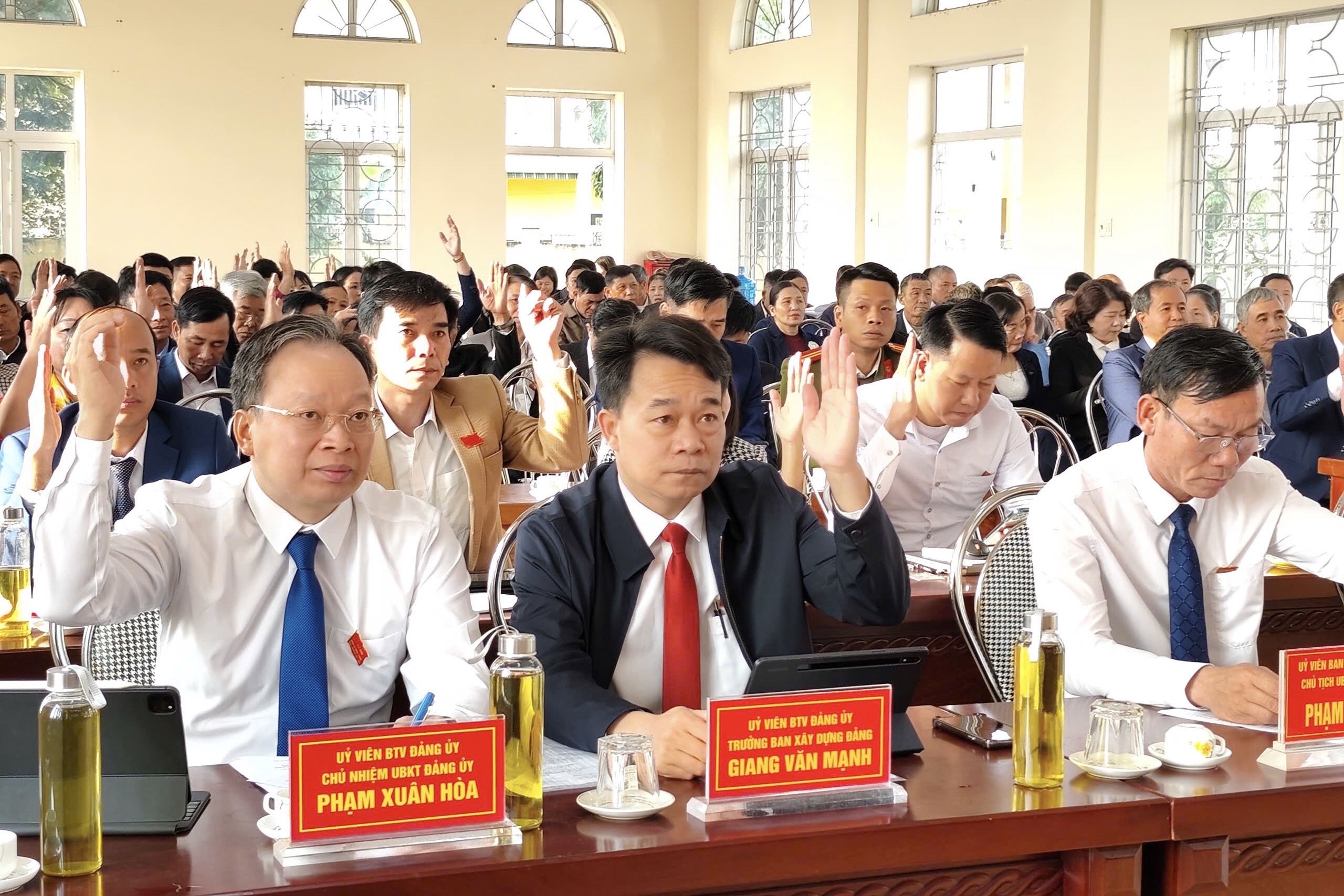 Các đại biểu biểu quyết tại kỳ họp.Với tinh thần dân chủ, trách nhiệm, kỳ họp đã biểu quyết thông qua 5 nghị quyết quan trọng, gồm: Nghị quyết về Quy chế hoạt động của HĐND xã nhiệm kỳ 2021–2026; Nghị quyết về thực hiện nhiệm vụ phát triển kinh tế – xã hội, quốc phòng – an ninh năm 2025 và nhiệm vụ, giải pháp năm 2026; Nghị quyết về dự toán thu ngân sách nhà nước trên địa bàn, thu – chi ngân sách địa phương và phân bổ ngân sách xã năm 2026; Nghị quyết về kế hoạch đầu tư năm 2026; Nghị quyết về tạm giao chỉ tiêu biên chế, số lượng người làm việc, hợp đồng lao động trong các cơ quan, đơn vị sự nghiệp thuộc xã năm 2026.