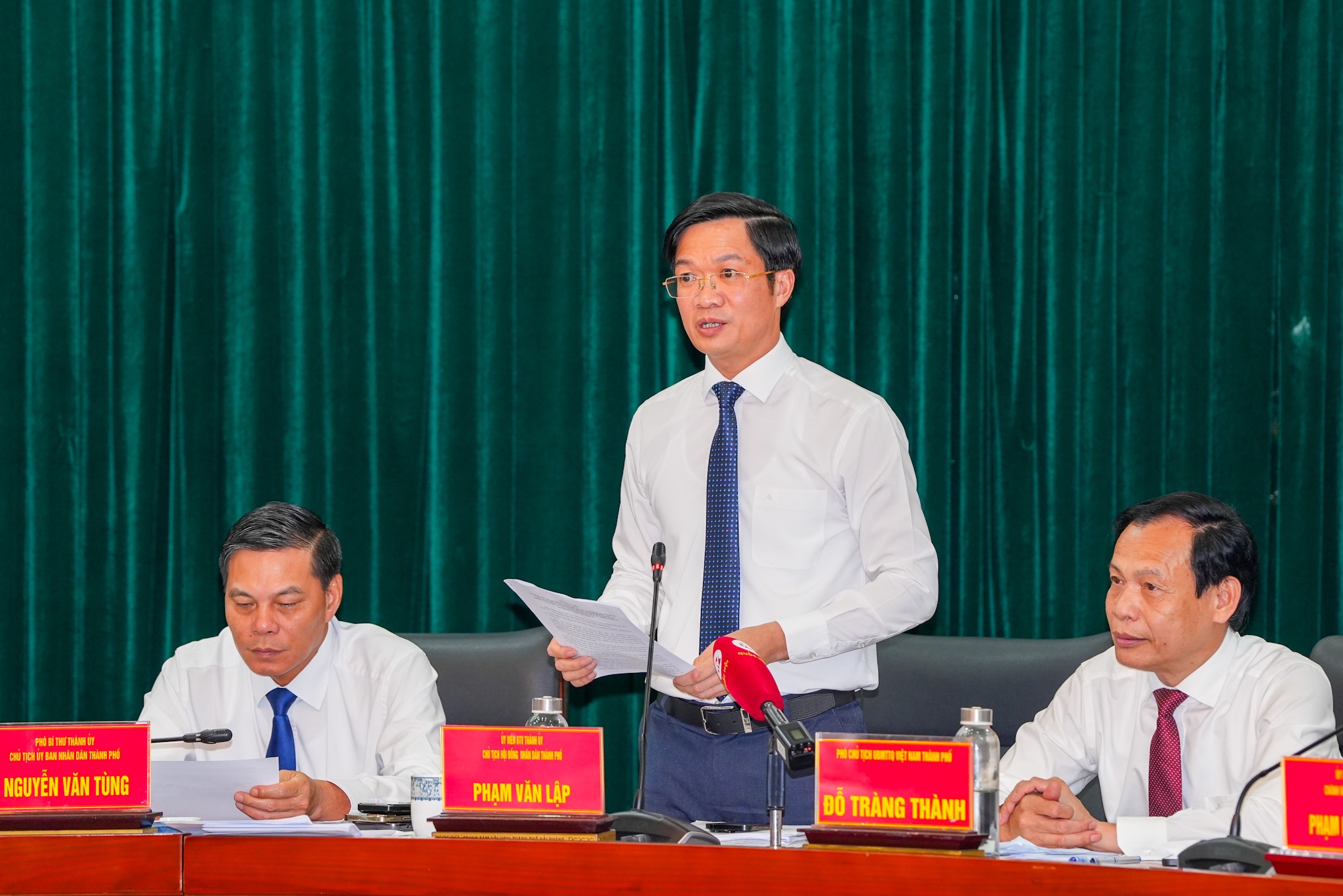 Đồng chí Phạm Văn Lập, Uỷ viên Ban Thường vụ Thành uỷ, Chủ tịch HĐND thành phố phát biểu tại Hội nghị.