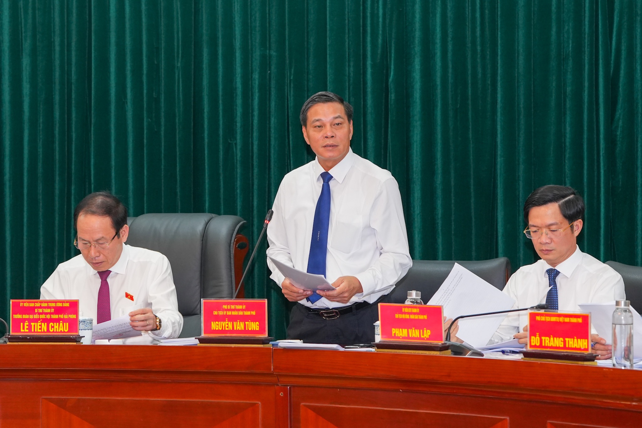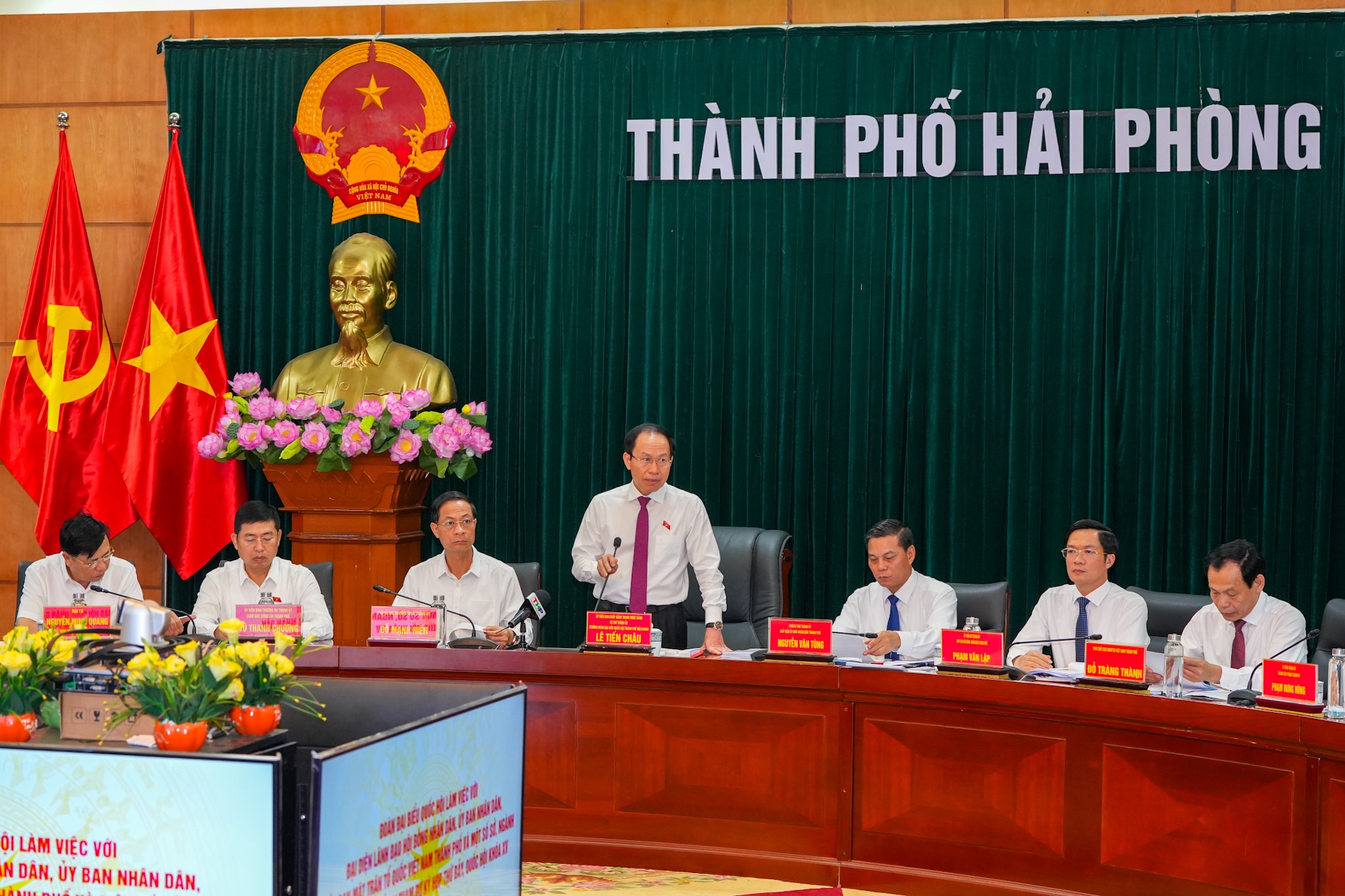 Chủ tịch UBND thành phố đề nghị Đoàn ĐBQH Hải Phòng kiến nghị, đề xuất với Quốc hội, Chính phủ, các Bộ, ngành Trung ương quan tâm, tháo gỡ, giải quyết vướng mắc một số vấn đề liên quan tới thực hiện các mục tiêu phát triển của Hải Phòng. Cụ thể là xem xét, tháo gỡ phát triển điện gió; các công trình dự án giao thông, đầu tư các bến cảng tiếp theo của Cảng cửa ngõ Lạch Huyện, Nam Đồ Sơn; tuyến đường sắt Lào Cai – Hà Nội - Hải Phòng; cao tốc Ninh Bình - Hải Phòng; các Dự án tại Cảng Hàng không quốc tế Cát Bi; phê duyệt các Khu công nghiệp mới của Hải Phòng; phân cấp cho thành phố được chấp thuận chủ trương đầu tư hạ tầng các Khu công nghiệp; tăng thêm nguồn lực đầu tư công từ nguồn vốn của Trung ương cho các công trình trọng điểm trên địa bàn; cho phép sử dụng linh hoạt nguồn quỹ cải cách tiền lương vào một số lĩnh vực đầu tư của thành phố.