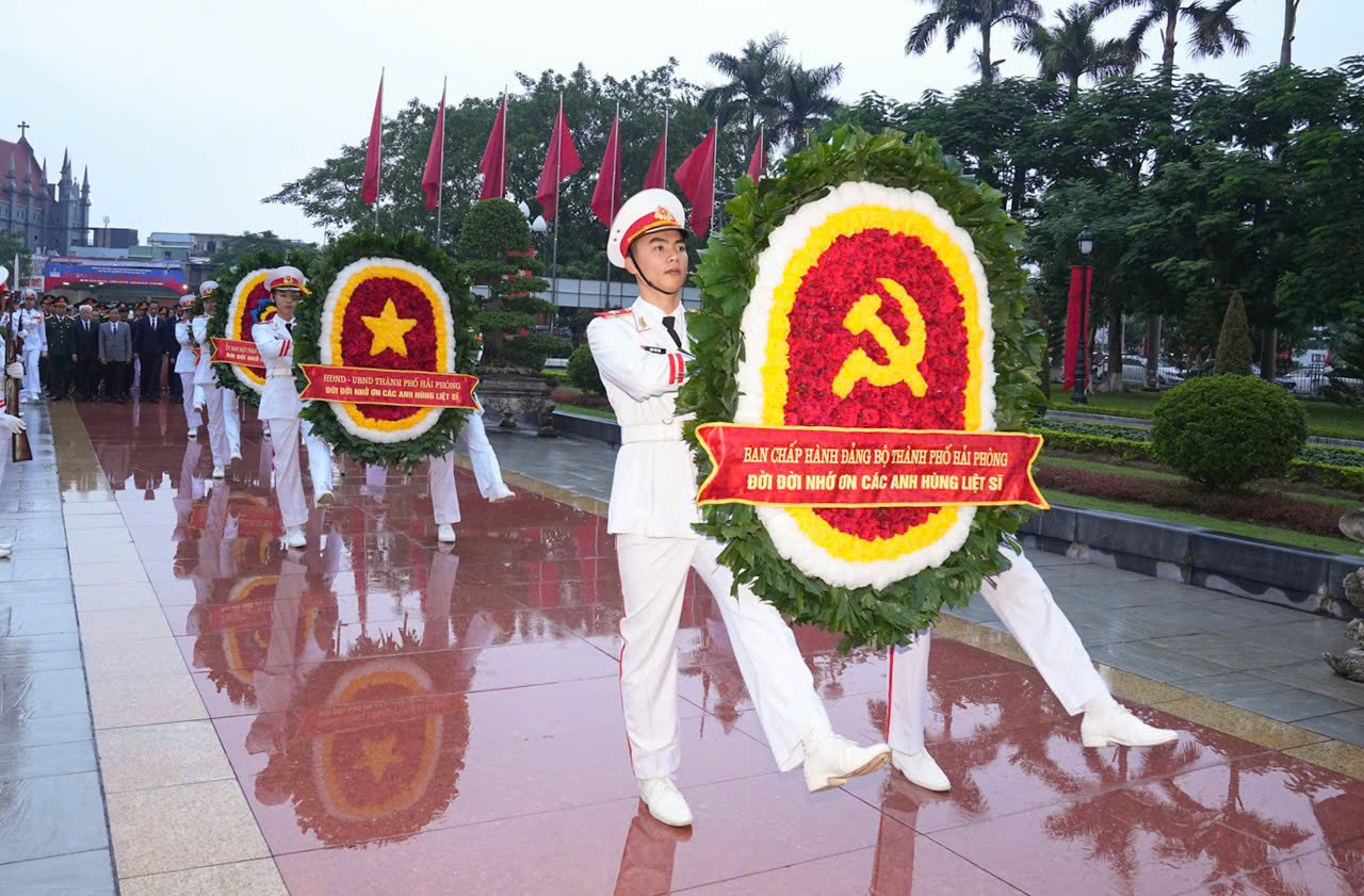 Lãnh đạo Thành ủy, HĐND, UBND, Ủy ban MTTQ Việt Nam thành phố dâng hương tại Đài tưởng niệm các Anh hùng liệt sĩ thành phố Hải Phòng.