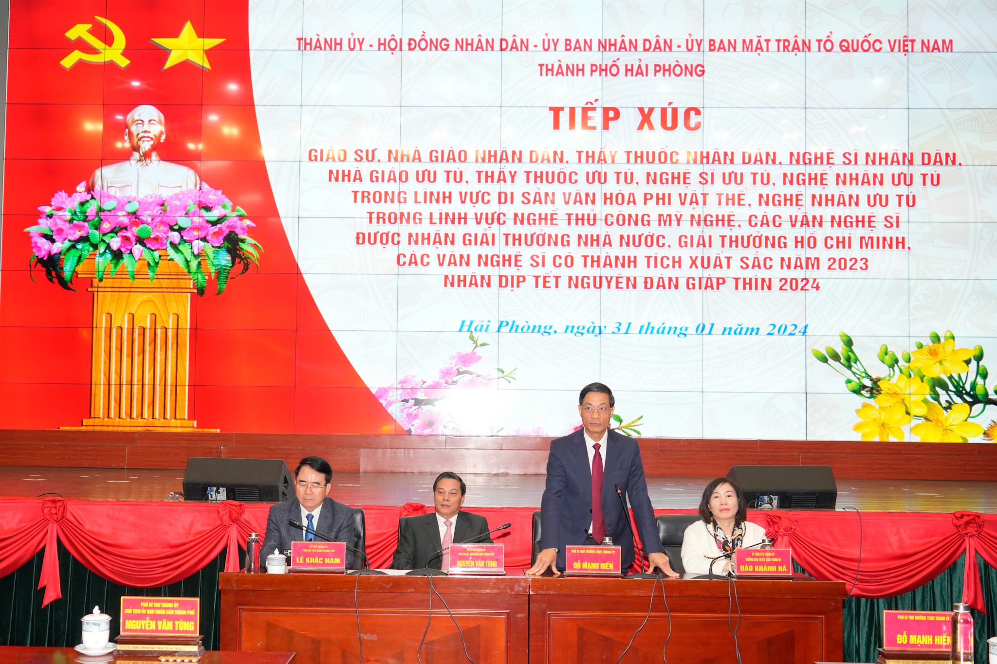(Haiphong.gov.vn) – Sáng 31/1, tại Trung tâm Hội nghị thành phố, Thành ủy - HĐND - UBND - Ủy ban MTTQ Việt Nam thành phố tổ chức tiếp xúc đội ngũ trí thức, văn nghệ sĩ tiêu biểu thành phố nhân dịp Tết Nguyên đán Giáp Thìn 2024.