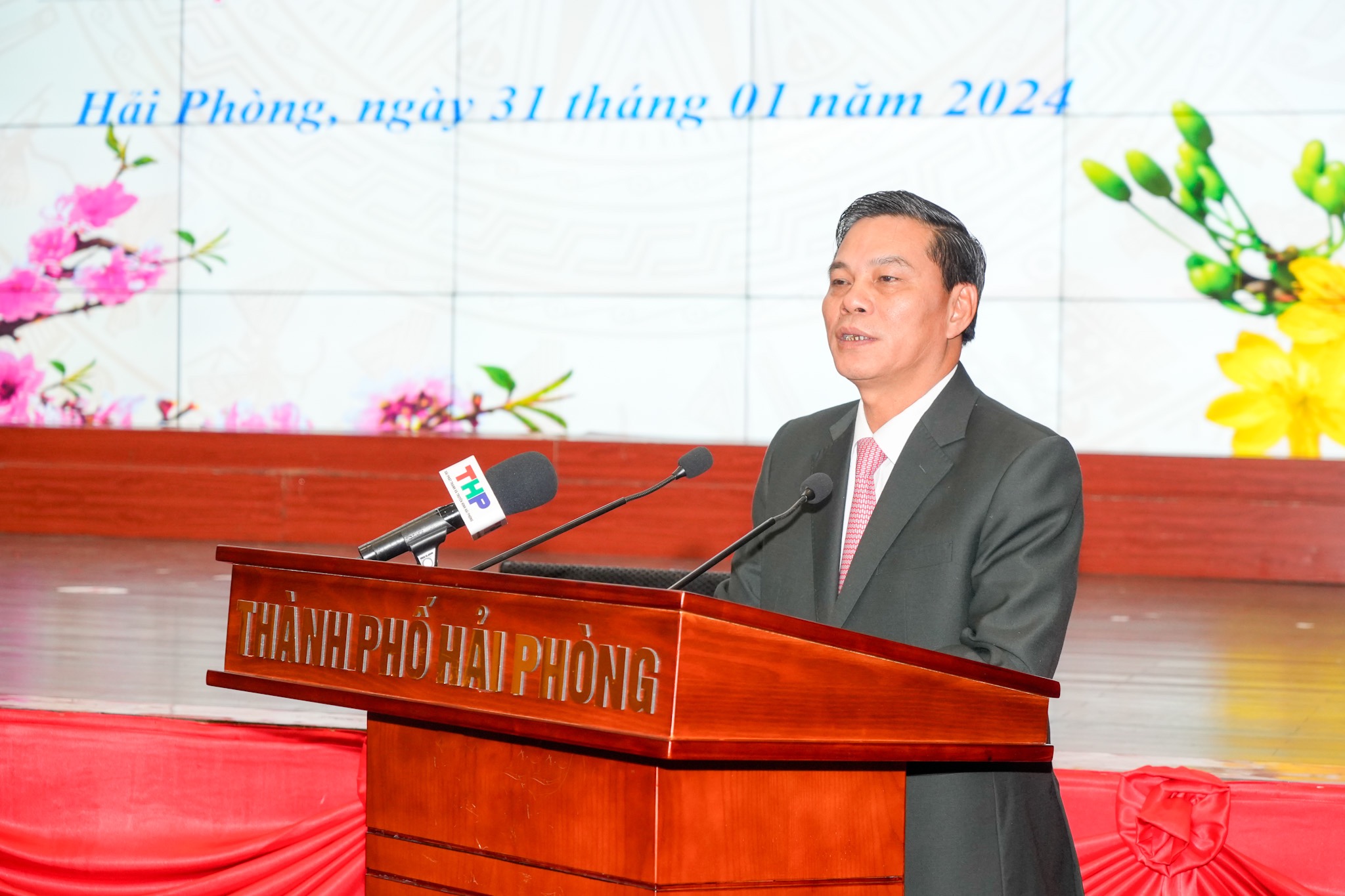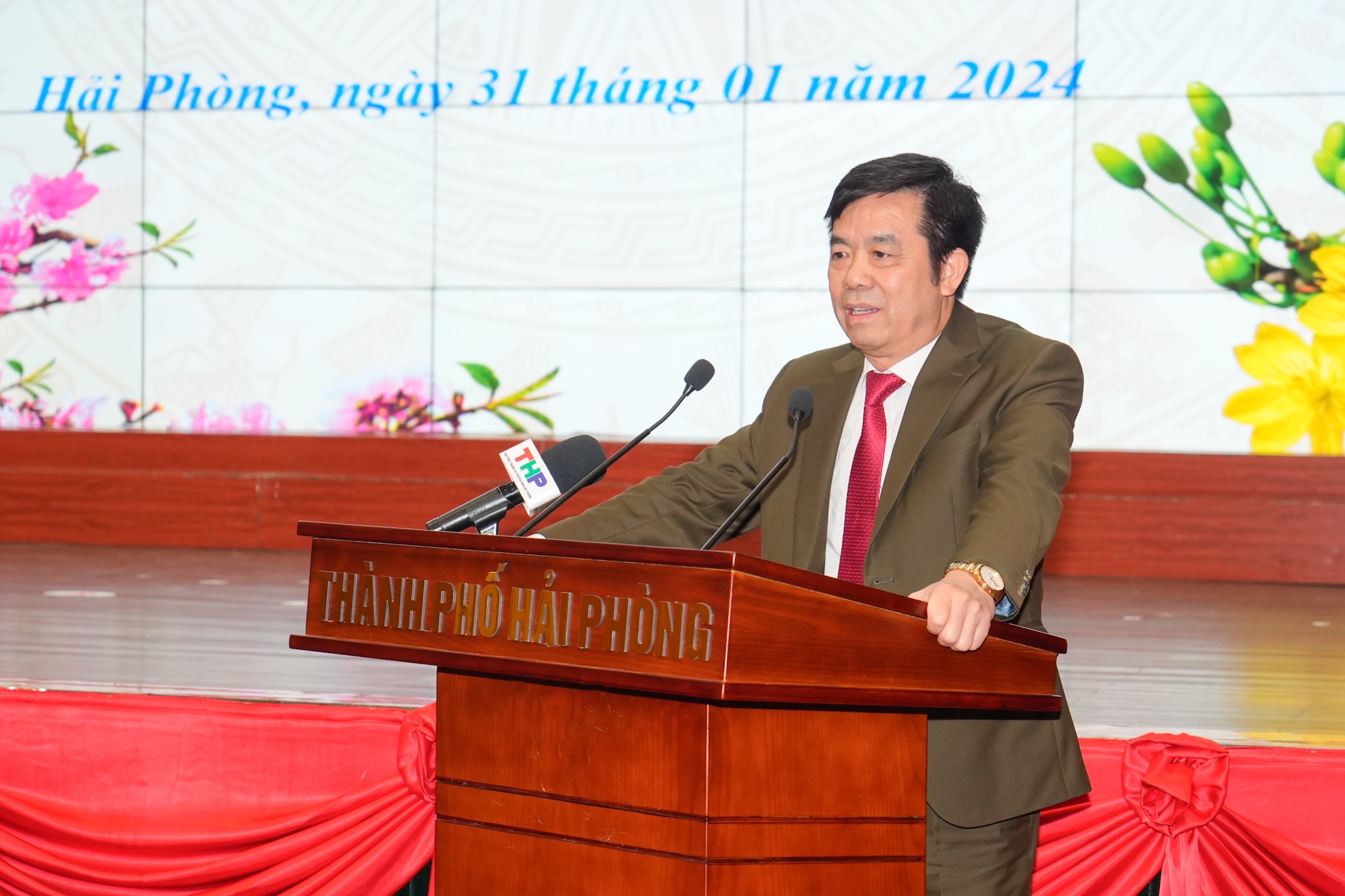 Đồng chí Nguyễn Văn Tùng, Phó Bí thư Thành ủy, Chủ tịch UBND thành phố tiếp thu ý kiến đóng góp.Phát biểu tại Hội nghị, đồng chí Nguyễn Văn Tùng, Phó Bí thư Thành ủy, Chủ tịch UBND thành phố cho biết: năm 2023 thành phố Hải Phòng đã hoàn thành xuất sắc nhiệm vụ phát triển kinh tế - xã hội, một số chỉ tiêu đạt trong tốp 3, tốp 5 của cả nước; lĩnh vực văn hóa nghệ thuật thành phố có nhiều điểm nhấn; quốc phòng, an ninh tiếp tục được quan tâm, thành phố đi đầu trong việc xây dựng khu vực phòng thủ cấp quận, huyện và được đánh giá là địa phương đảm bảo an ninh trật tự, an ninh biển đảo. Đặc biệt, Vịnh Hạ Long – Quần đảo Cát Bà được UNESCO vinh danh là di sản thiên nhiên thế giới, đây là kết quả thành phố theo đuổi trong nhiều năm qua. Tính đến hết năm 2023, thành phố có 21 bảo vật được công nhận bảo vật cấp quốc gia. Trong lĩnh vực y tế, kỹ thuật ghép thận, ghép giác mạc đánh dấu bước tiến vượt bậc của thành phố. Lĩnh vực giáo dục tiếp tục nằm trong tốp đầu của cả nước…