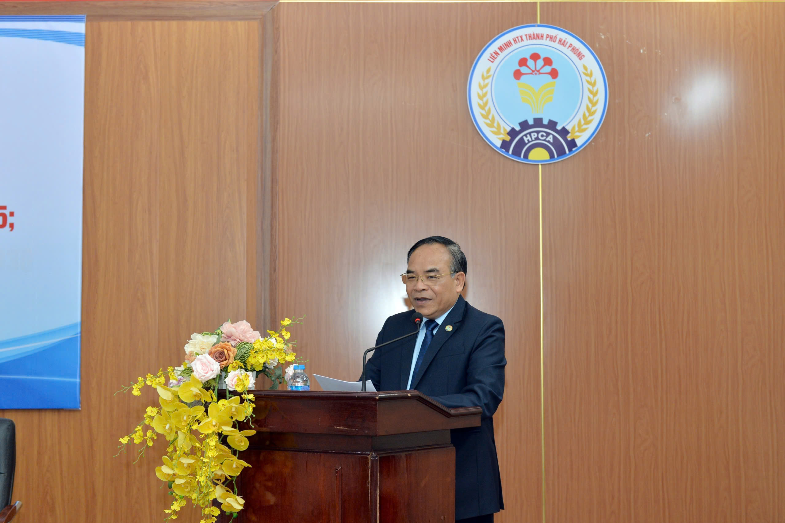 Chủ tịch Liên minh HTX thành phố Hải Phòng Ngô Ngọc Khánh báo cáo tại hội nghị.Báo cáo tại Hội nghị cho thấy, năm 2025, khu vực kinh tế tập thể (KTTT), HTX trong toàn Cụm thi đua số 2 đã nỗ lực duy trì đà phát triển, chất lượng hoạt động được nâng lên rõ rệt. Tính đến hết năm, toàn Cụm có 10.835 HTX và Quỹ tín dụng nhân dân đang hoạt động (thành lập mới 226 HTX), với số lao động thường xuyên trên 75.216 người. Doanh thu bình quân một HTX ước đạt 870 triệu đồng/năm, thu nhập bình quân của người lao động đạt 50-60 triệu đồng/người/năm. Khu vực tổ hợp tác (THT) cũng hoạt động hiệu quả với 10.731 THT, doanh thu bình quân 400 triệu đồng/năm.