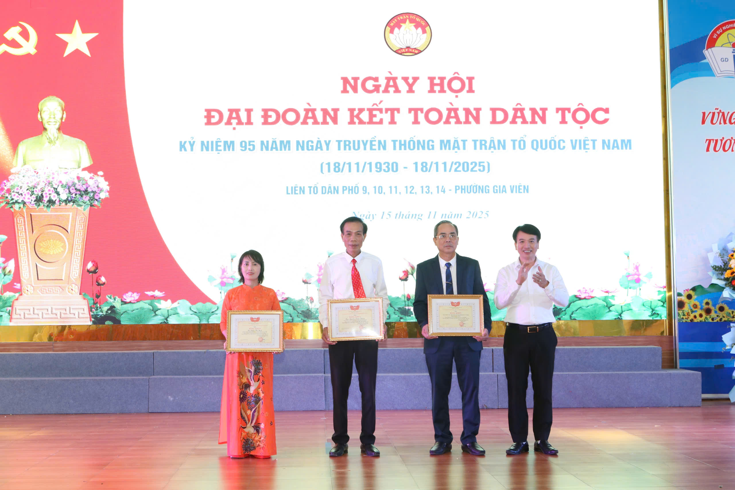 Đồng chí Nguyễn Đức Tuấn, Phó Chủ tịch Thường trực Ủy ban MTTQ Việt Nam thành phố trao tặng Bằng khen cho tập thể.Phát biểu tại Ngày hội, đồng chí Phó Chủ tịch Thường trực Ủy ban MTTQ Việt Nam thành phố Nguyễn Đức Tuấn ghi nhận, biểu dương những nỗ lực, đóng góp của cấp ủy, chính quyền, MTTQ, các đoàn thể và Nhân dân phường Gia Viên, đặc biệt là liên Tổ dân phố Lê Lợi đã đoàn kết, đồng lòng, góp phần quan trọng vào thành tích chung của thành phố.