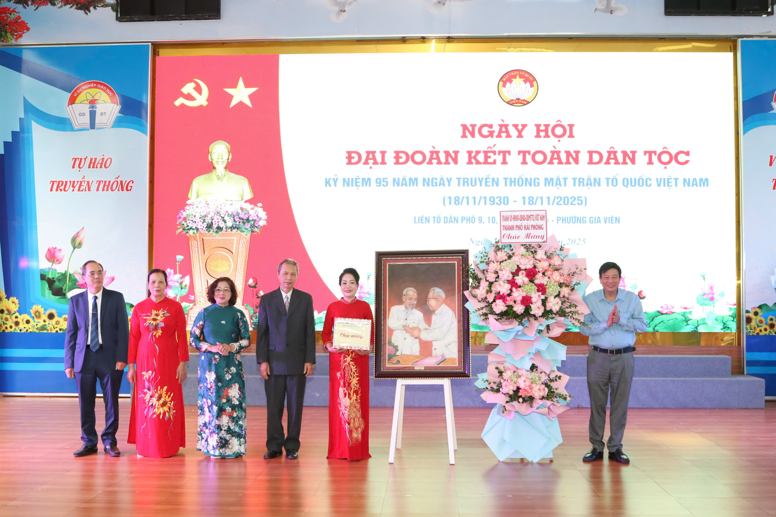 Đồng chí Trần Quang Tường, Bí thư Đảng uỷ, Chủ tịch HĐND phường Gia Viên tặng hoa chúc mừng liên Tổ dân phố Lê Lợi.Nhấn mạnh, đoàn kết là truyền thống quý báu, là nhân tố quan trọng tạo nên sức mạnh của dân tộc ta, được hun đúc trong suốt chiều dài lịch sử dựng nước và giữ nước, đồng chí Phó Chủ tịch Thường trực Ủy ban MTTQ Việt Nam thành phố đề nghị phường Gia Viên và các Tổ dân phố tiếp tục củng cố và phát huy hơn nữa khối đại đoàn kết toàn dân tộc, tăng cường gắn bó giữa Đảng, chính quyền và Nhân dân. Thực hiện tốt Quy chế dân chủ ở cơ sở, lắng nghe, tôn trọng, thường xuyên kiểm tra, giám sát, tháo gỡ khó khăn và giải quyết kịp thời tâm tư, nguyện vọng chính đáng của người dân. Xây dựng đô thị xanh - sạch - đẹp - văn minh, đẩy mạnh phân loại rác tại nguồn, giảm rác thải nhựa, khuyến khích sử dụng năng lượng tái tạo, tiết kiệm điện, bảo vệ môi trường sống tại mỗi khu dân cư. Bên cạnh đó, cần đẩy mạnh chuyển đổi số toàn diện trong đời sống xã hội; giữ vững an ninh chính trị, trật tự an toàn xã hội và lan tỏa tinh thần "lá lành đùm lá rách", không để ai bị bỏ lại phía sau.