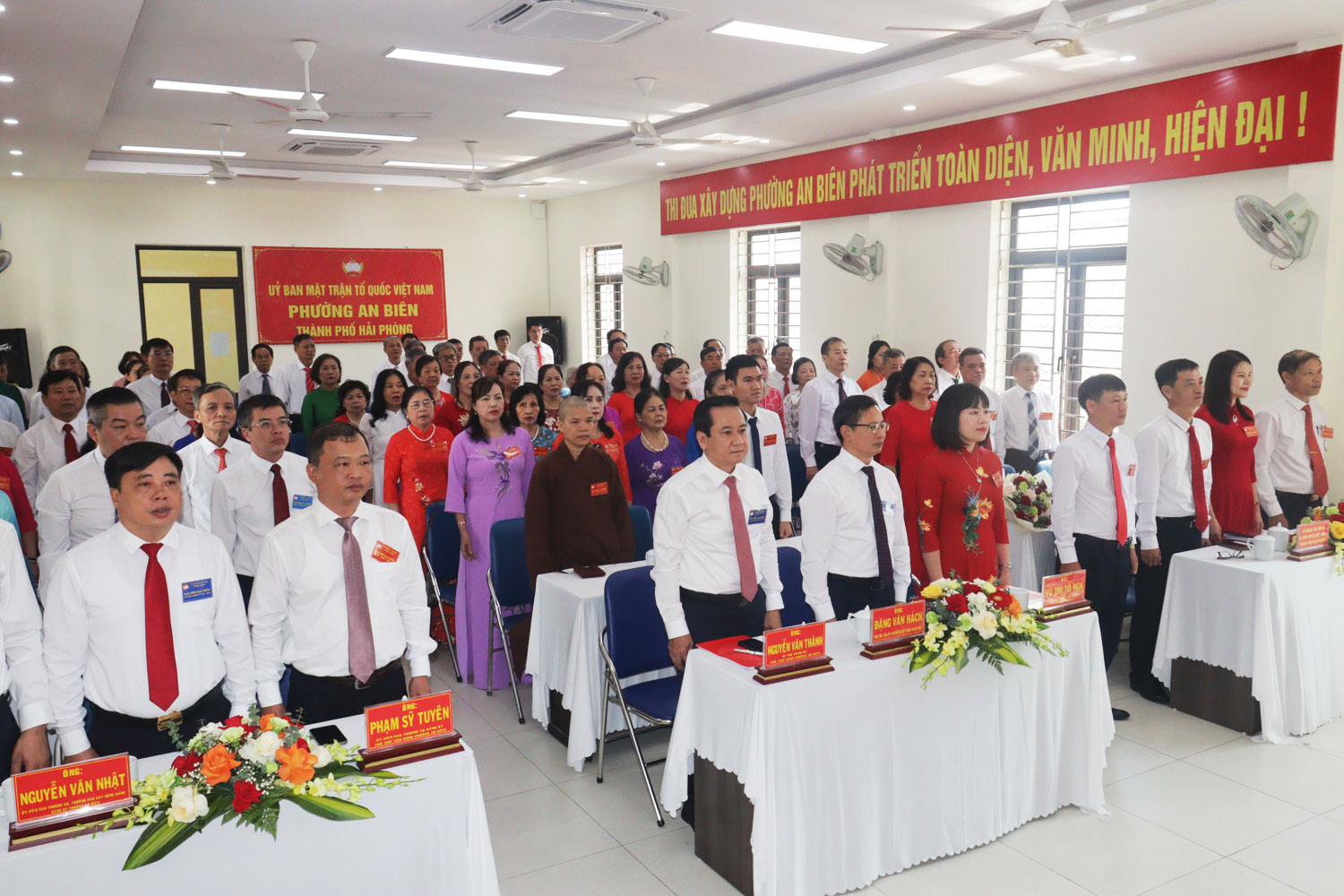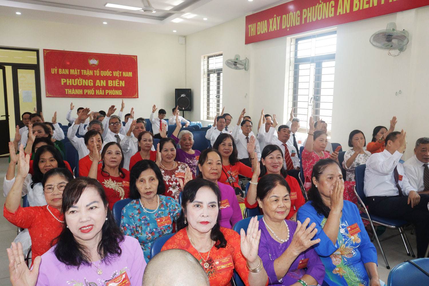 Các đại biểu biểu quyết tại Đại hội.Đại hội đã diễn ra thành công tốt đẹp, trong nhiệm kỳ 2025 - 2030, cùng tiềm năng, sức sáng tạo, năng lực, trí tuệ của các tầng lớp Nhân dân phường, MTTQ Việt Nam phường sẽ tiếp tục có những phong trào, hoạt động sáng tạo, thiết thực, hiệu quả, góp phần xây dựng thành phố Hải Phòng và phường An Biên phát triển nhanh, bền vững./.