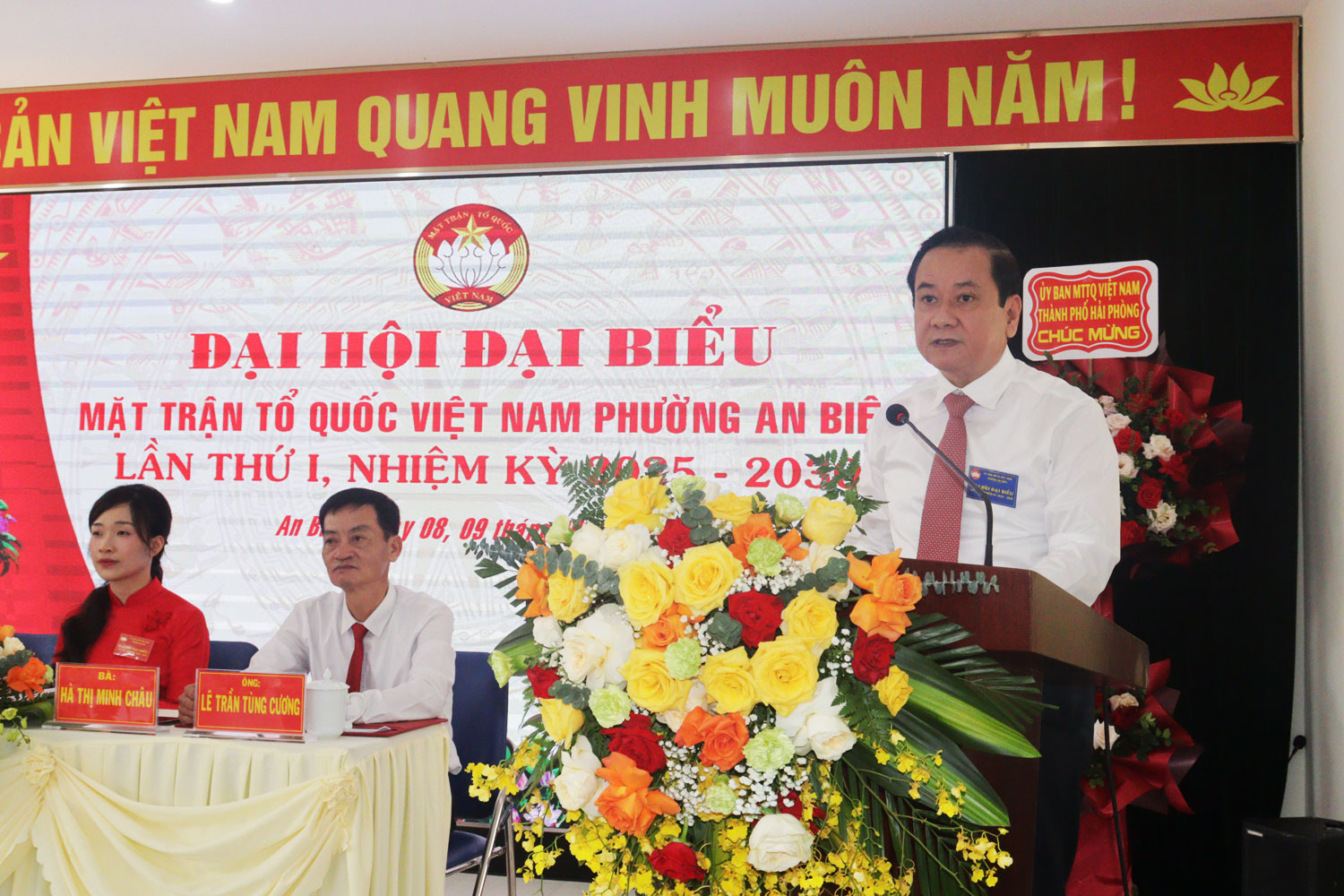 Đồng chí Đặng Văn Hách, Phó Chủ tịch Ủy ban MTTQ Việt Nam thành phố phát biểu chỉ đạo tại Đại hội.Phát biểu chỉ đạo tại Đại hội, đồng chí Đặng Văn Hách, Phó Chủ tịch Ủy ban MTTQ Việt Nam thành phố và đồng chí Nguyễn Văn Thành, Bí thư Đảng ủy, Chủ tịch HĐND phường biểu dương, ghi nhận vai trò, sự chủ động cùng những kết quả đạt được của MTTQ phường trong thời gian qua. MTTQ phường đã thể hiện được vị trí, vai trò quan trọng của mình trong hệ thống chính trị, là liên minh chính trị, liên hiệp tự nguyện, là tổ chức nòng cốt trong phát huy truyền thống, sức mạnh khối đại đoàn kết toàn dân tộc; cầu nối quan trọng của Đảng, chính quyền với Nhân dân; phát huy vai trò chủ thể của Nhân dân trong đời sống xã hội; đại diện bảo vệ quyền và lợi ích hợp pháp, chính đáng của đoàn viên, hội viên và Nhân dân địa phương; góp phần quan trọng vào mục tiêu xây dựng phường An Biên phát triển toàn diện, văn minh, hiện đại.