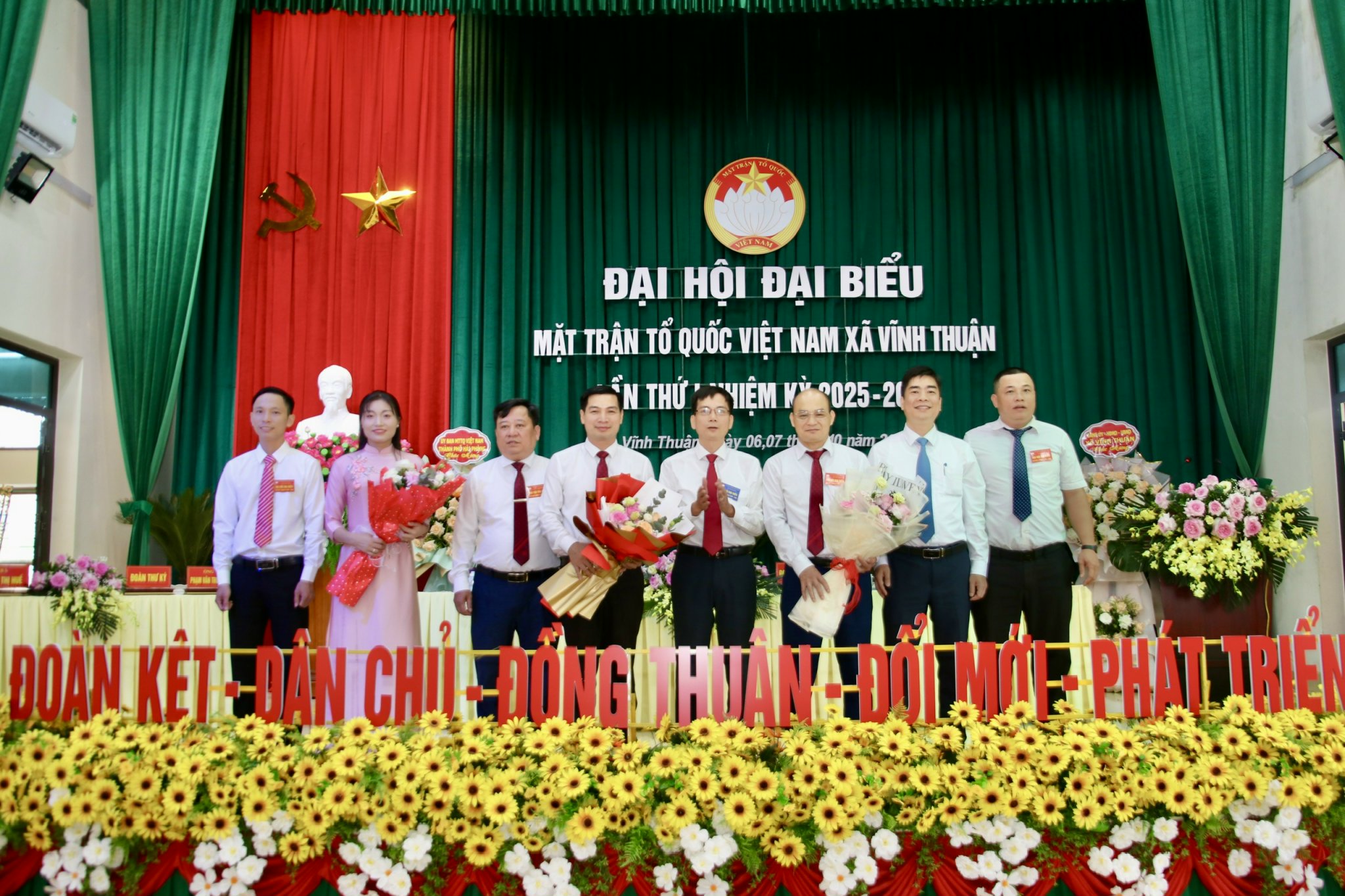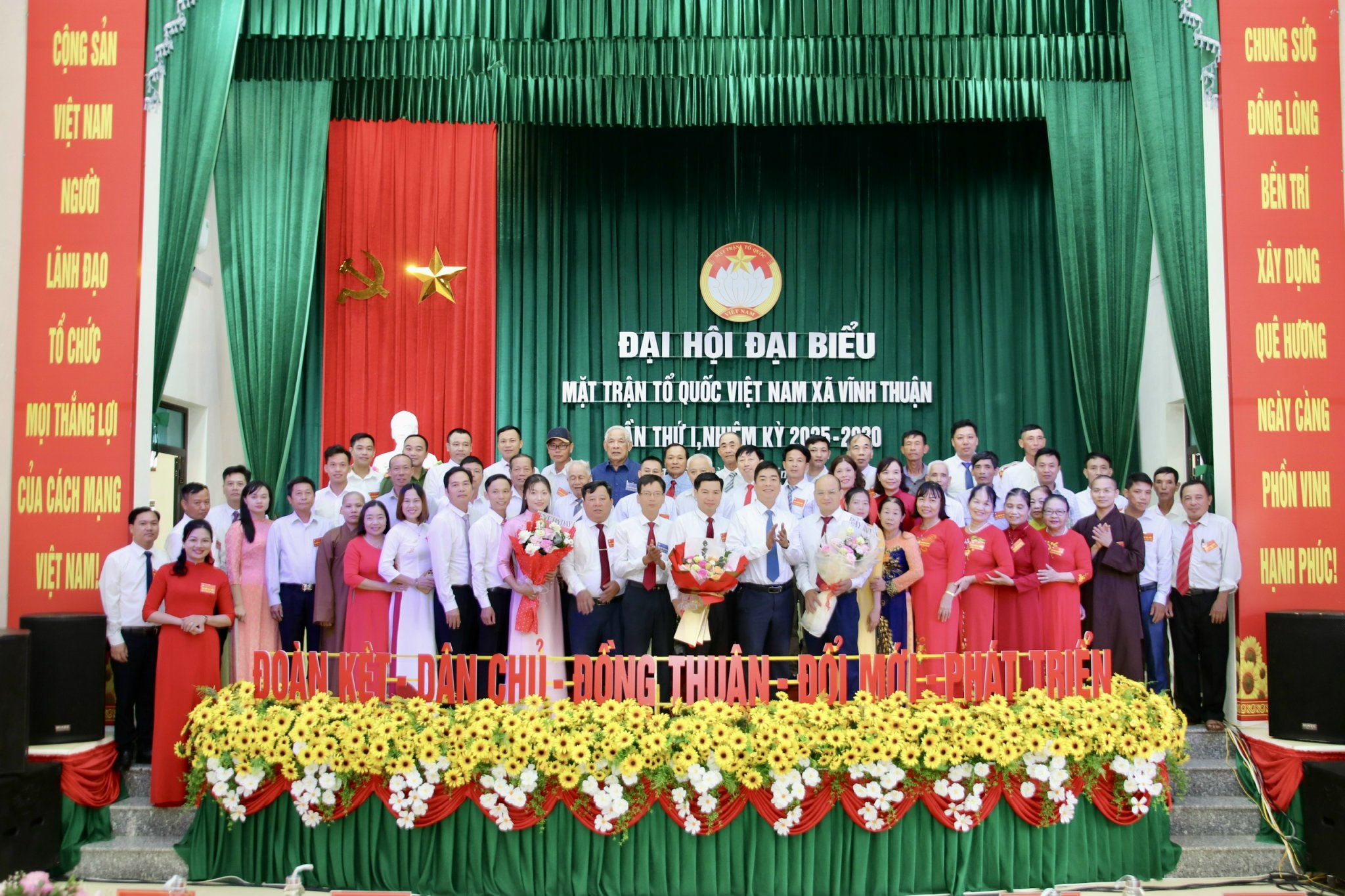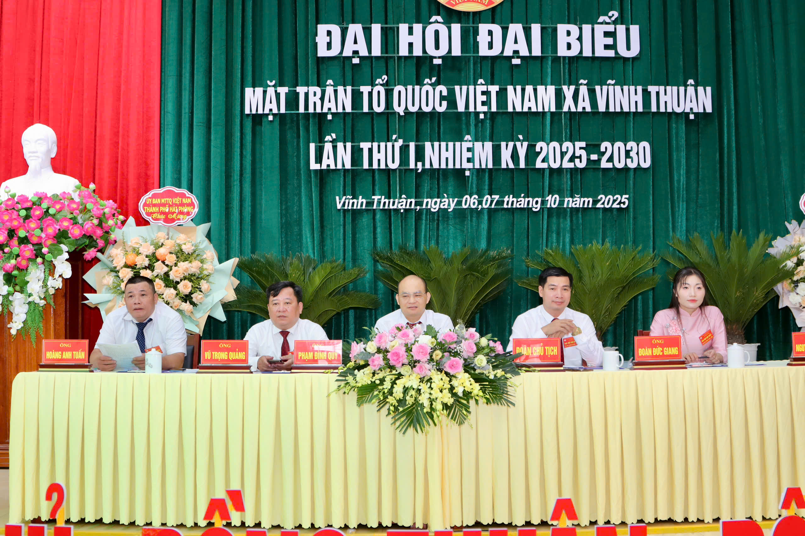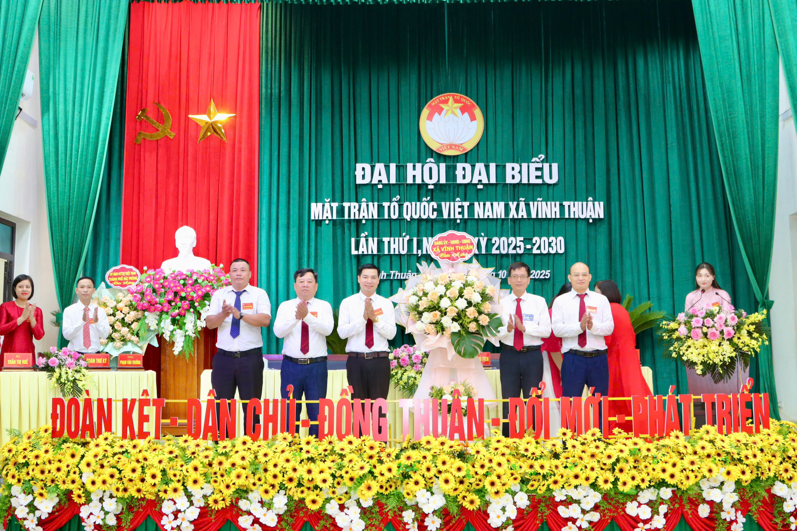 Ban chấp hành MTTQ Việt Nam xã Vĩnh Thuận nhiệm kỳ 2025-2030 ra mắt Đại hộiĐại hội đã biểu quyết thông qua Nghị quyết Đại hội lần thứ I, nhiệm kỳ 2025–2030 với 15 chỉ tiêu, 6 chương trình hành động trọng tâm. Đại hội hiệp thương cử 59 Ủy viên Ủy ban MTTQ Việt Nam xã Vĩnh Thuận khóa I, bầu đoàn đại biểu dự Đại hội MTTQ Việt Nam thành phố. Đồng chí Đoàn Đức Giang được tín nhiệm giữ chức Chủ tịch Ủy ban MTTQ Việt Nam xã Vĩnh Thuận nhiệm kỳ 2025–2030.