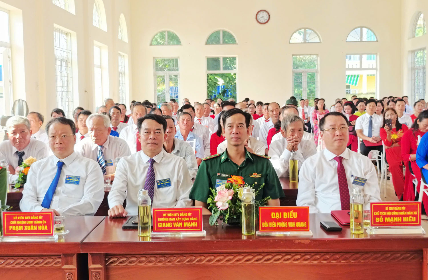 Đồng chí Đỗ Mạnh Hiếu, Bí thư Đảng ủy, Chủ tịch HĐND xã tặng hoa chúc mừng Đại hội.Phong trào “Toàn dân đoàn kết xây dựng nông thôn mới, đô thị văn minh” được triển khai sâu rộng, đạt nhiều kết quả nổi bật. Toàn xã có 123 hộ hiến hơn 1.500 m2 đất mở rộng đường giao thông, xây dựng công trình công cộng; lắp đặt 10 cụm camera an ninh, xây dựng 2 sản phẩm OCOP 3 sao; xã hội hóa hàng trăm triệu đồng cho các hoạt động văn hóa, an sinh, từ thiện. Trong công tác giám sát, phản biện xã hội, MTTQ xã phối hợp tổ chức 5 cuộc giám sát, 17 cuộc tiếp xúc cử tri, hàng chục buổi đối thoại giữa chính quyền và Nhân dân. Tỷ lệ hài lòng của Nhân dân về kết quả xây dựng nông thôn mới kiểu mẫu đạt trên 99%.
